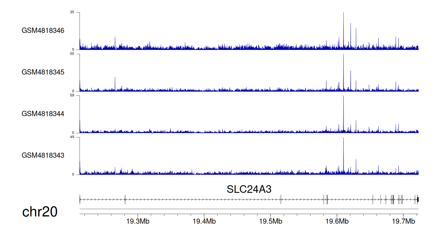 > Dataset: GSE131257 - SLC24A3 peak across samples