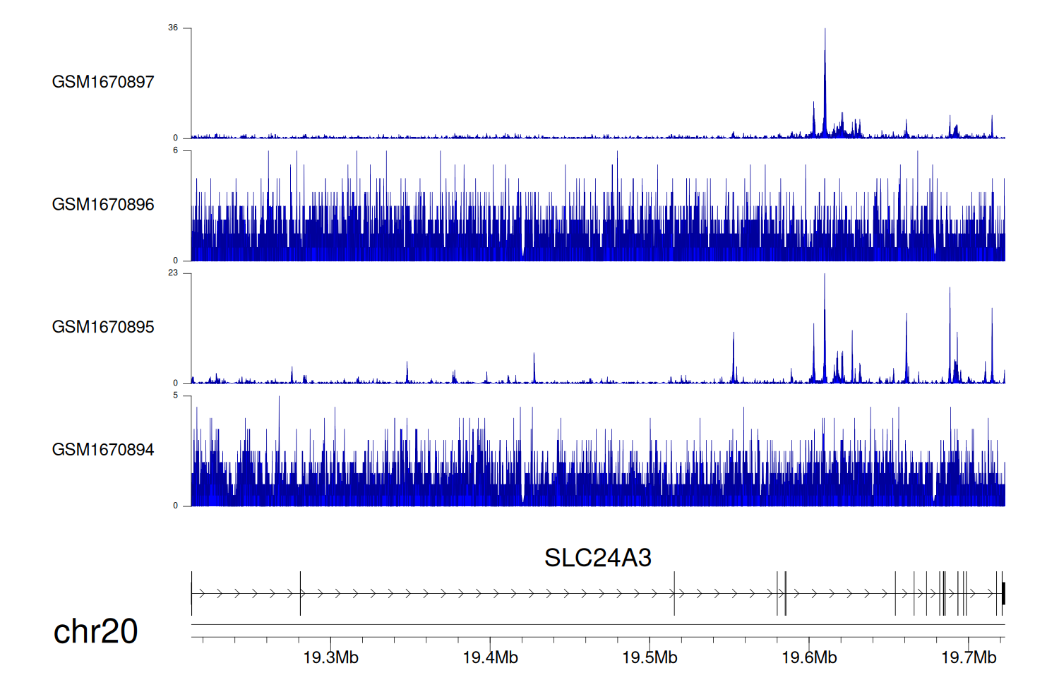 > Dataset: GSE68402 - SLC24A3 peak across samples