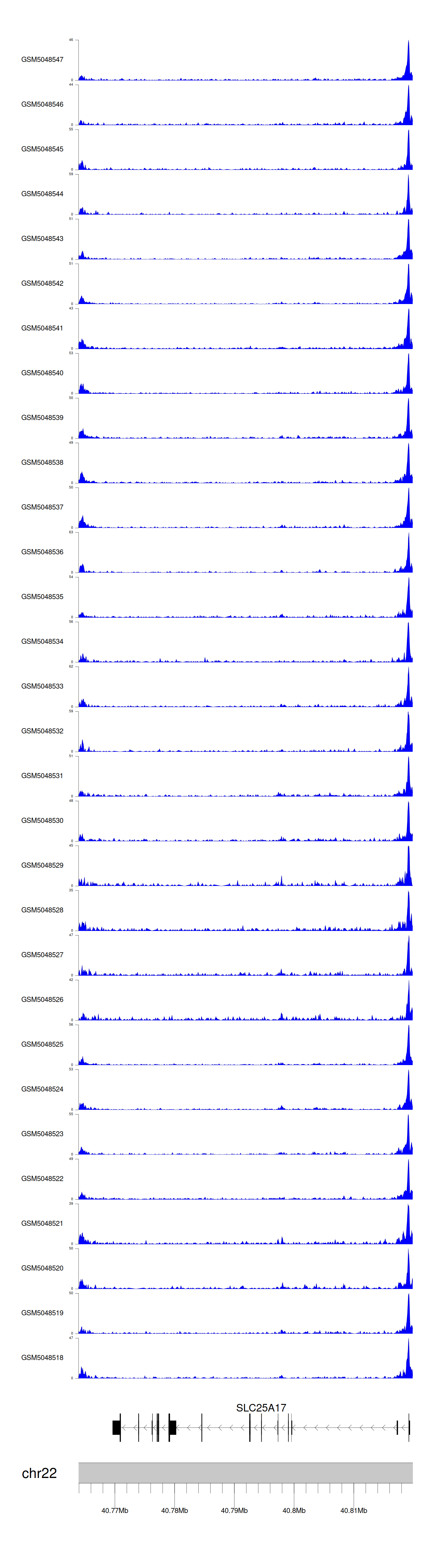 > Dataset: GSE30738 - SLC25A17 peak across samples