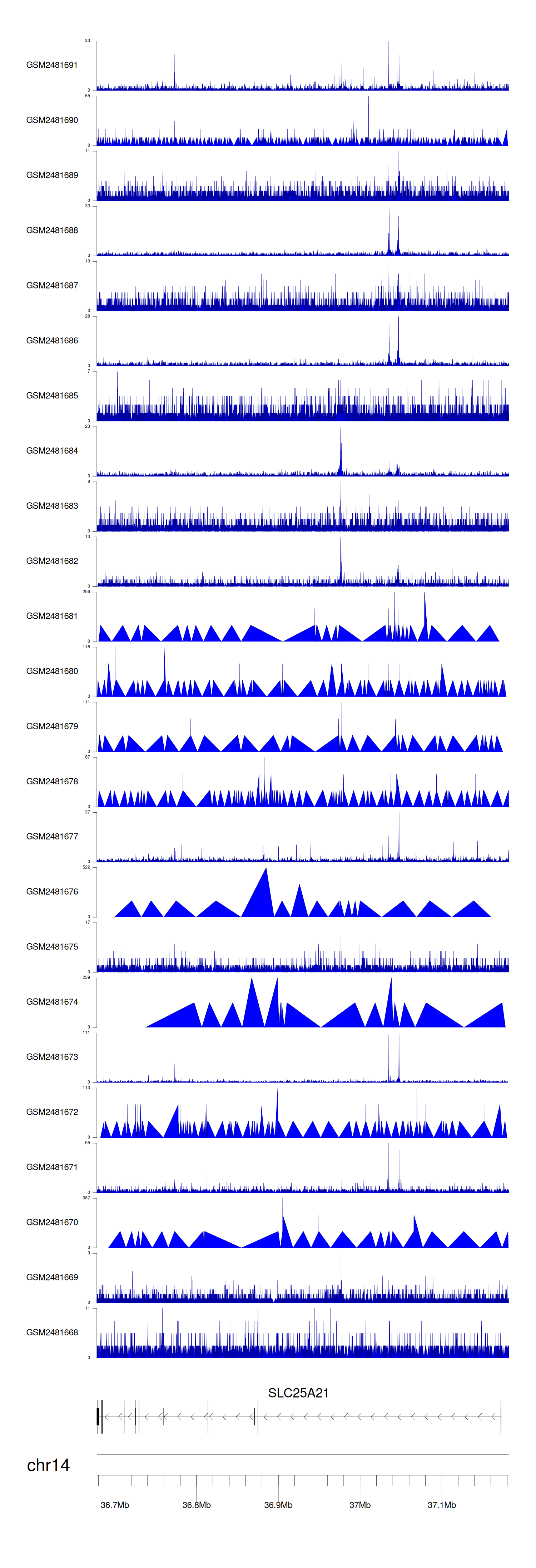 > Dataset: GSE94732 - SLC25A21 peak across samples