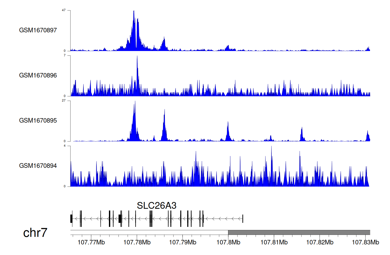 > Dataset: GSE68402 - SLC26A3 peak across samples