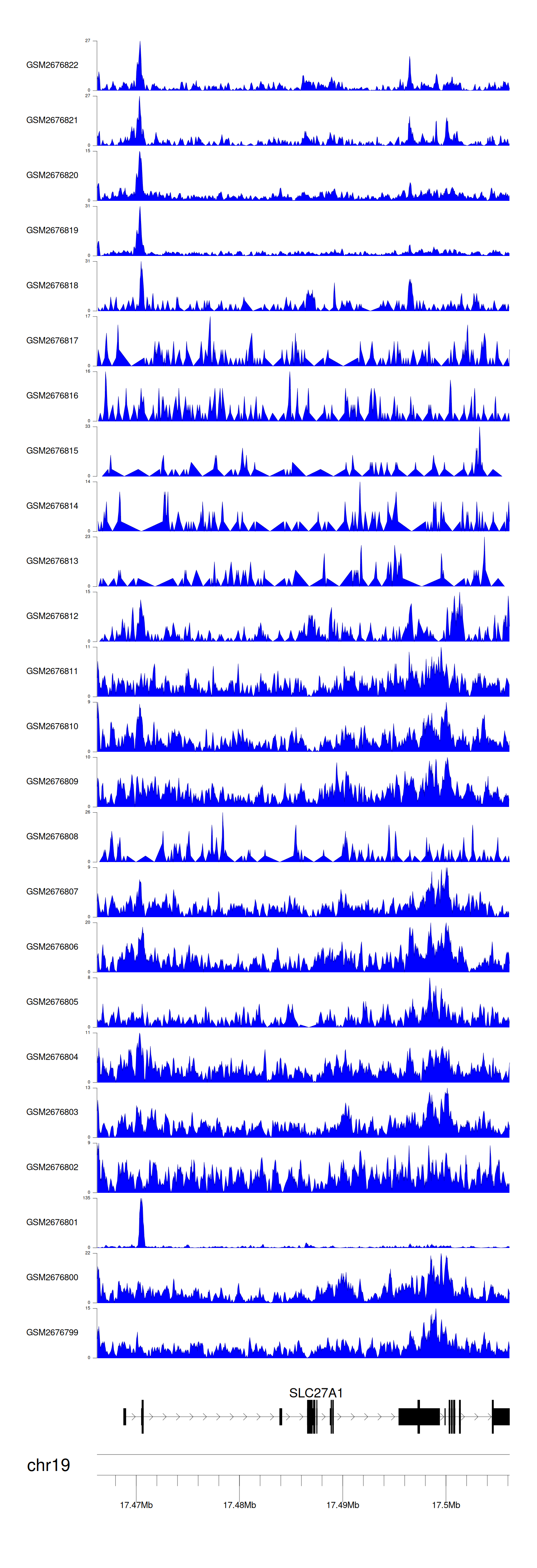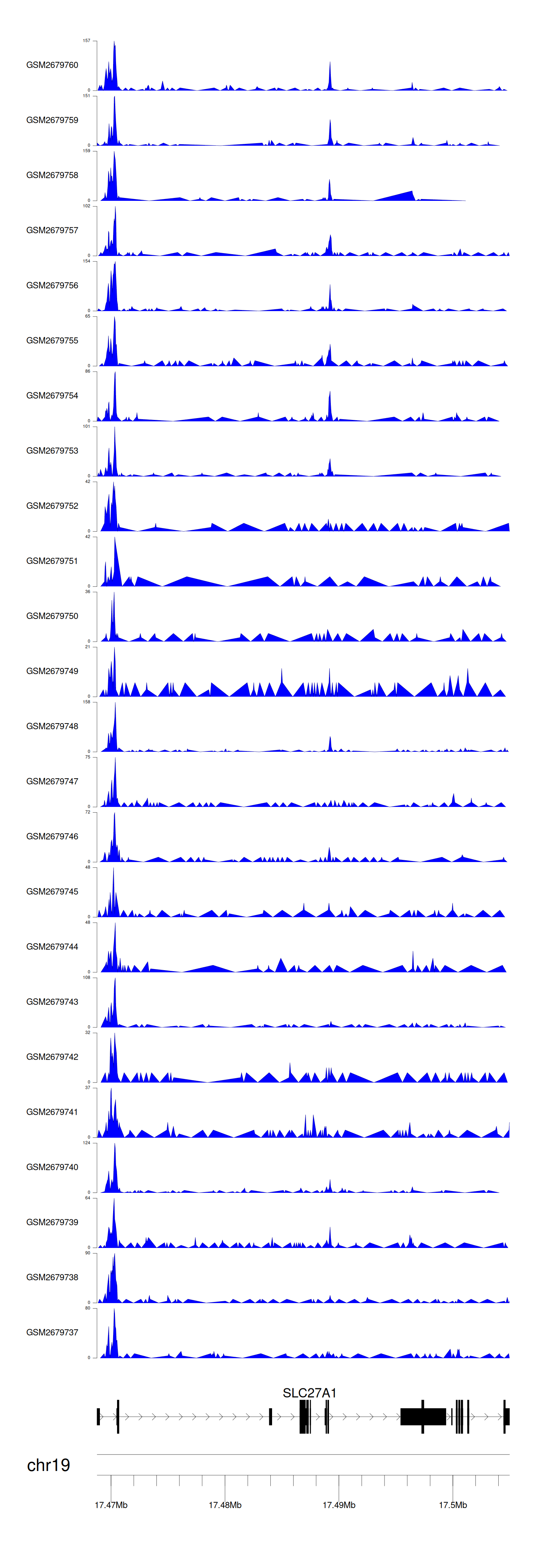 > Dataset: GSE100376 - SLC27A1 peak across samples