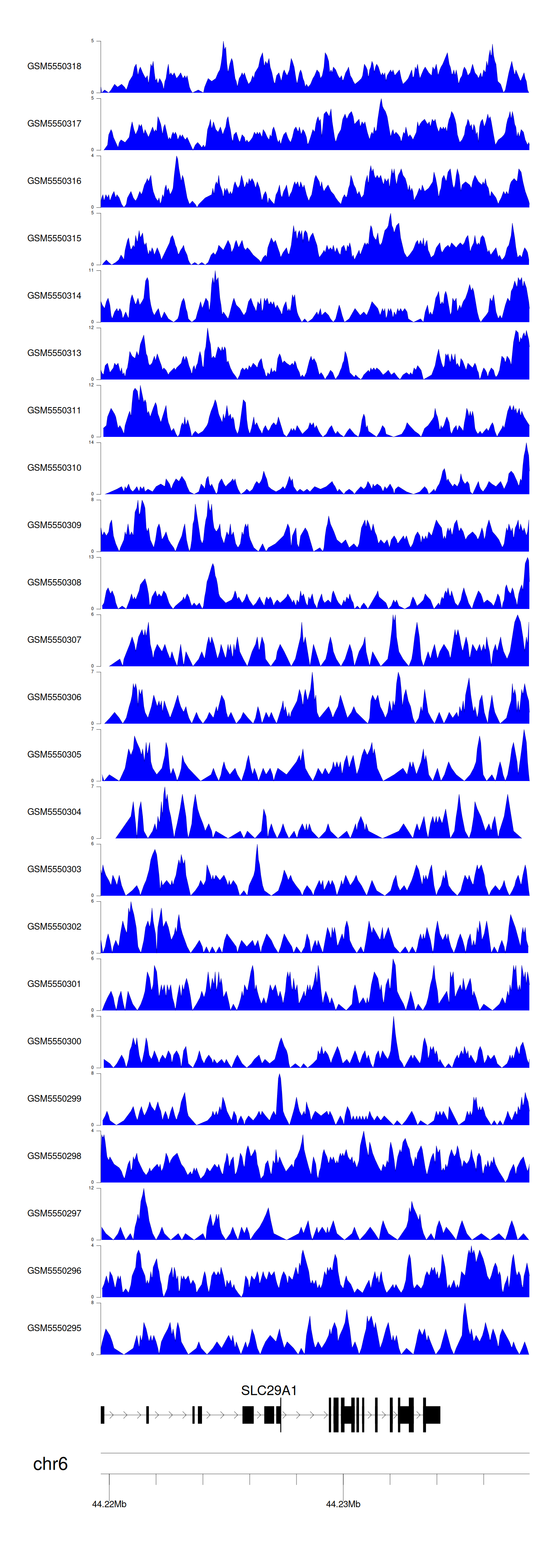 > Dataset: GSE143026 - SLC29A1 peak across samples