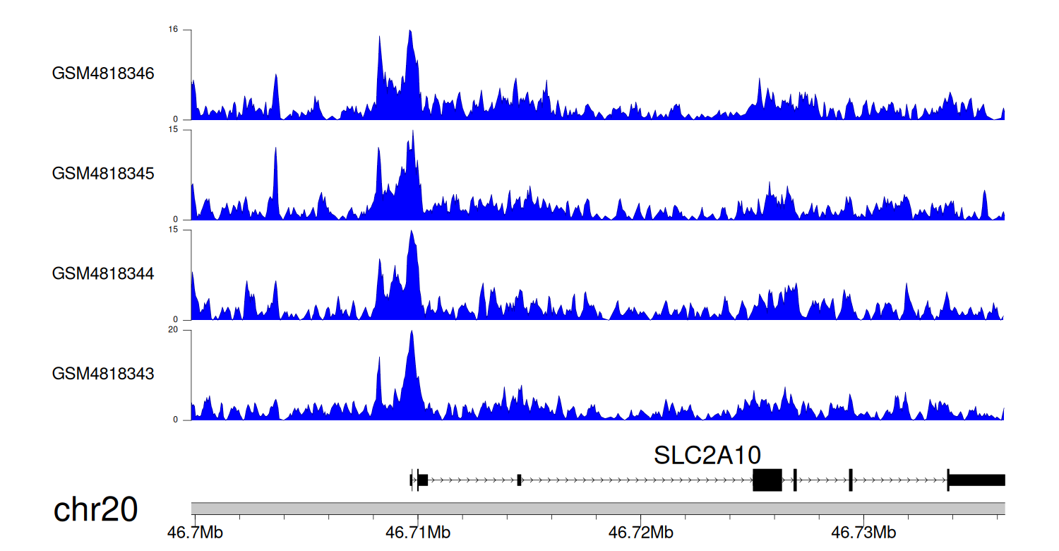 > Dataset: GSE131257 - SLC2A10 peak across samples