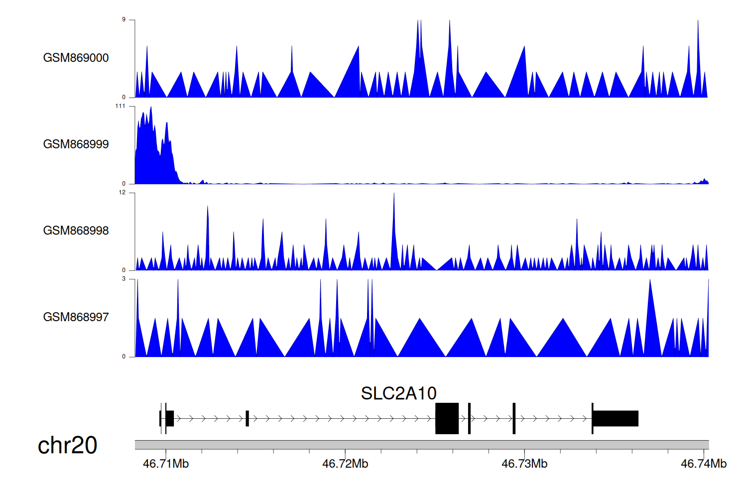 > Dataset: GSE68402 - SLC2A10 peak across samples