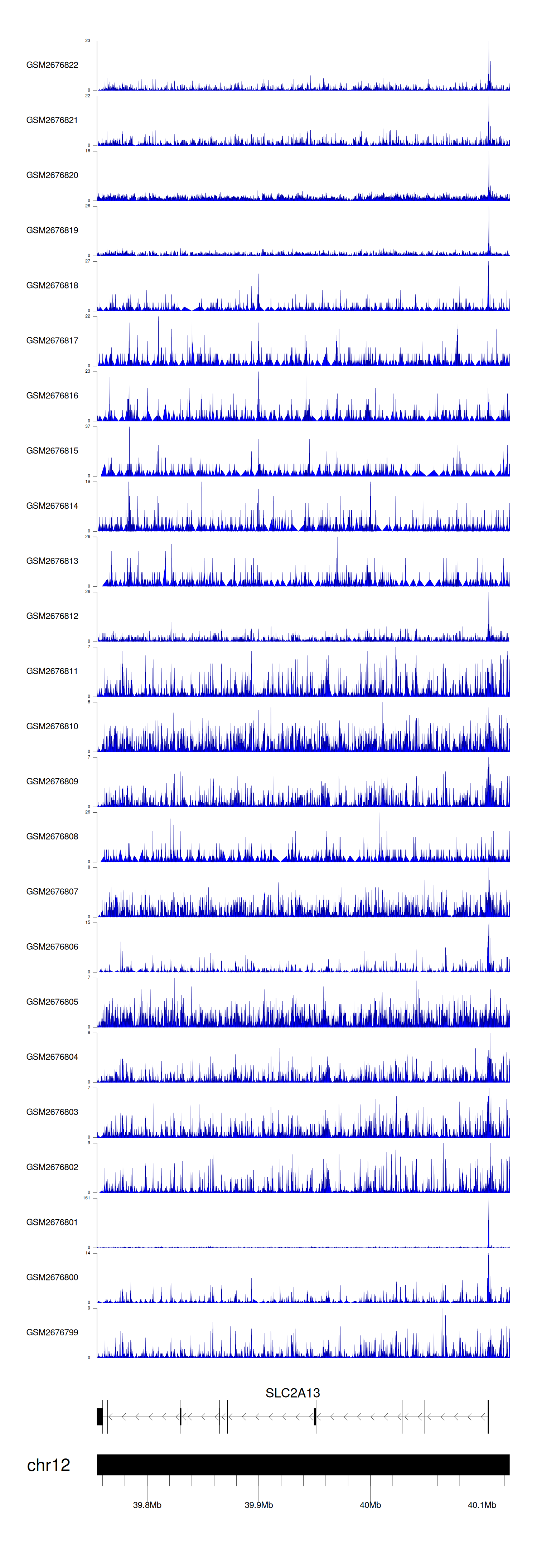 > Dataset: GSE100376 - SLC2A13 peak across samples