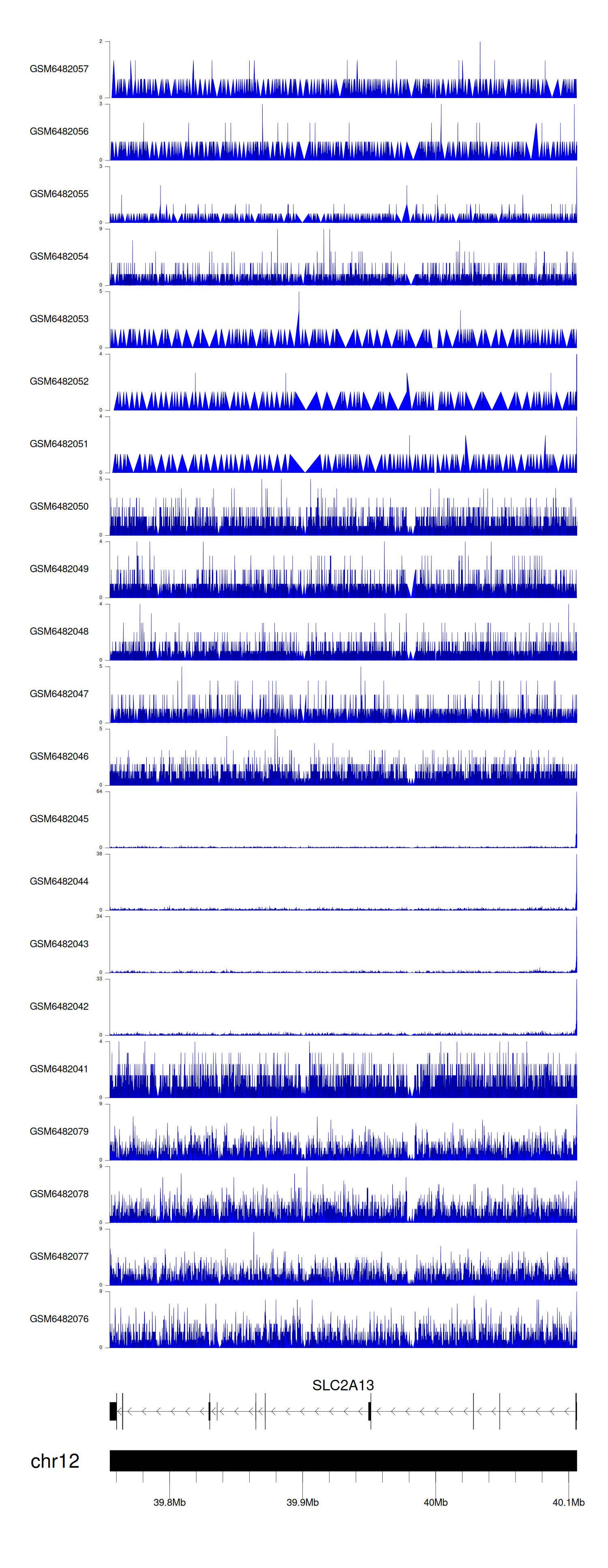> Dataset: GSE165705 - SLC2A13 peak across samples