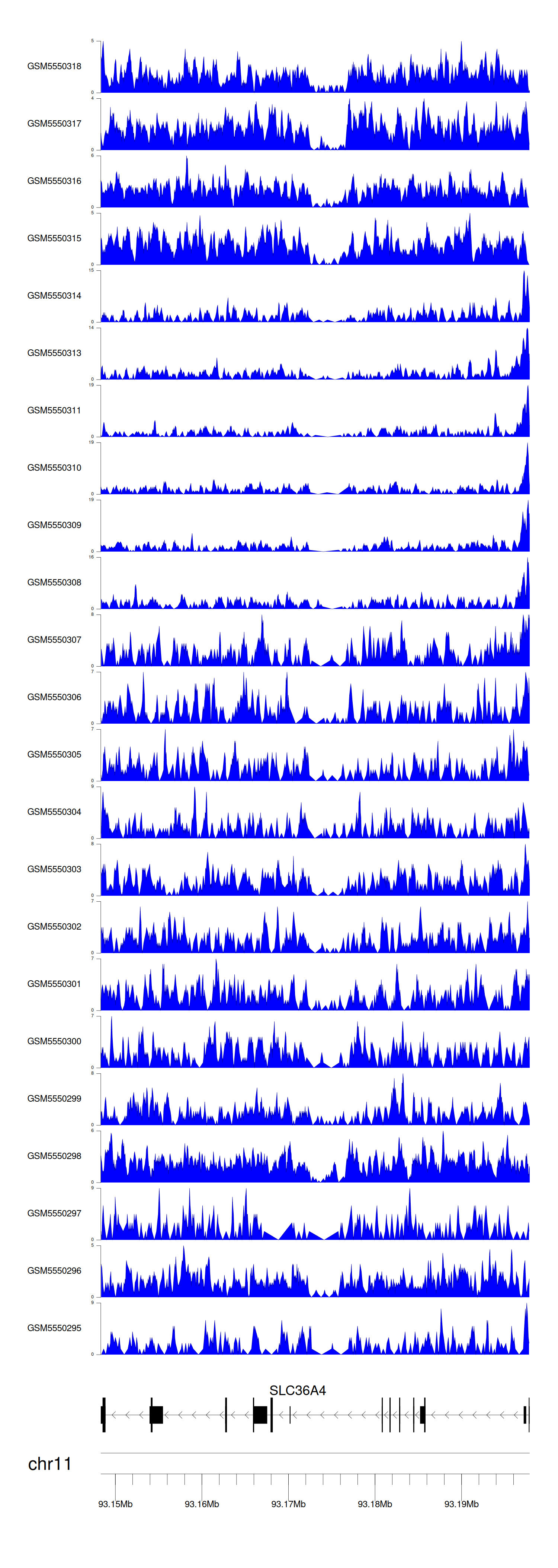 > Dataset: GSE143026 - SLC36A4 peak across samples