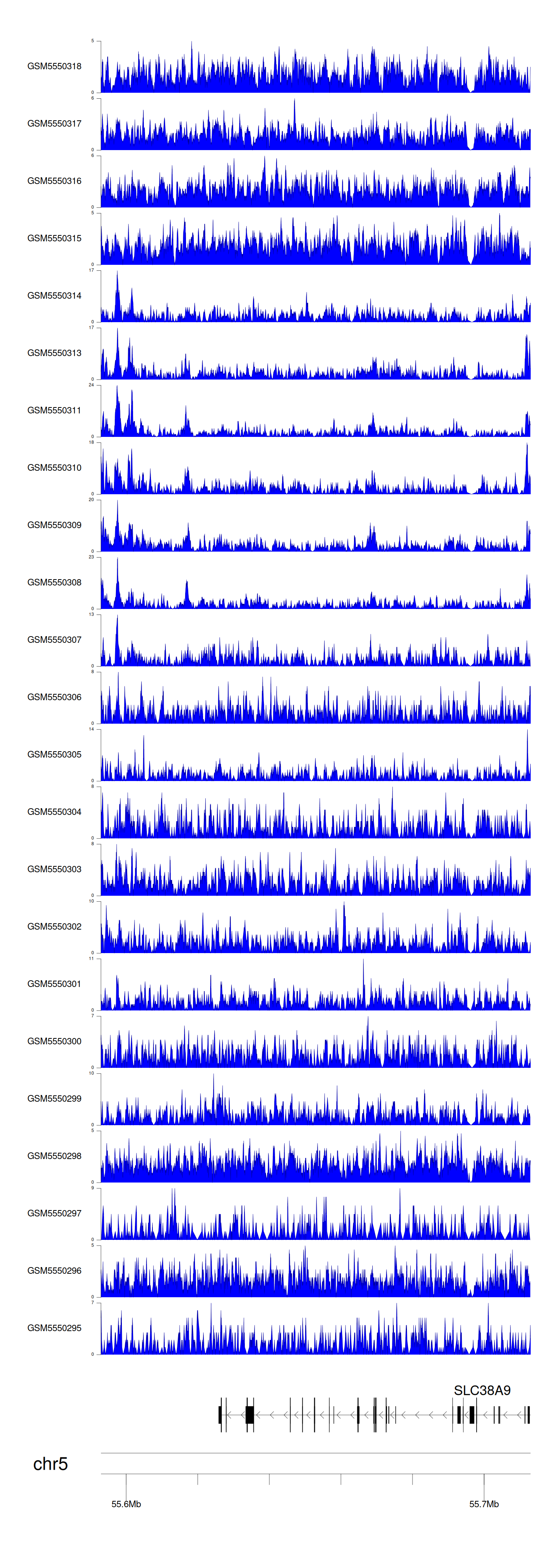 > Dataset: GSE143026 - SLC38A9 peak across samples