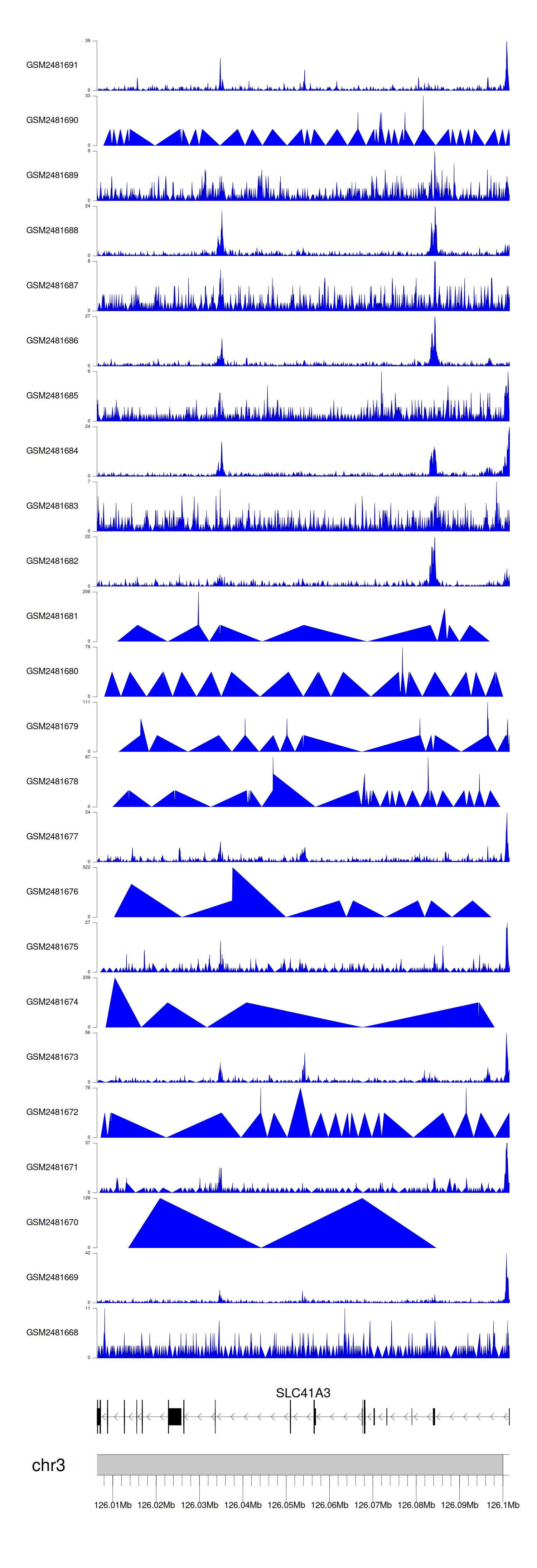 > Dataset: GSE94732 - SLC41A3 peak across samples
