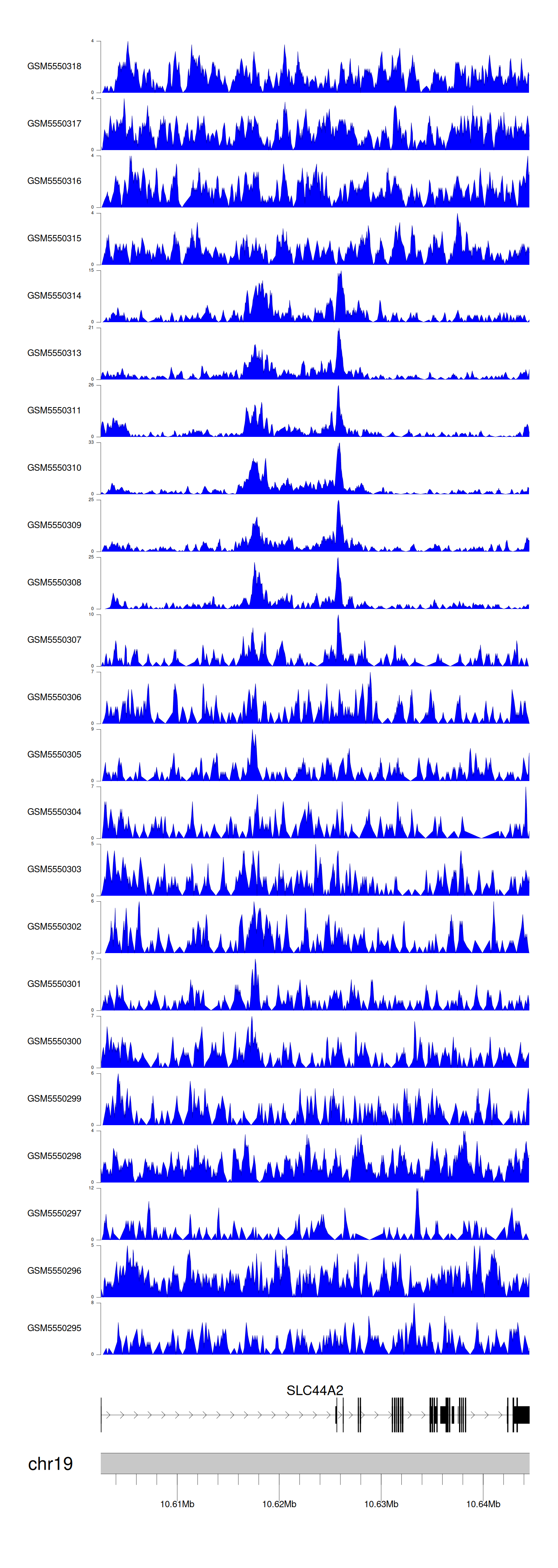 > Dataset: GSE143026 - SLC44A2 peak across samples