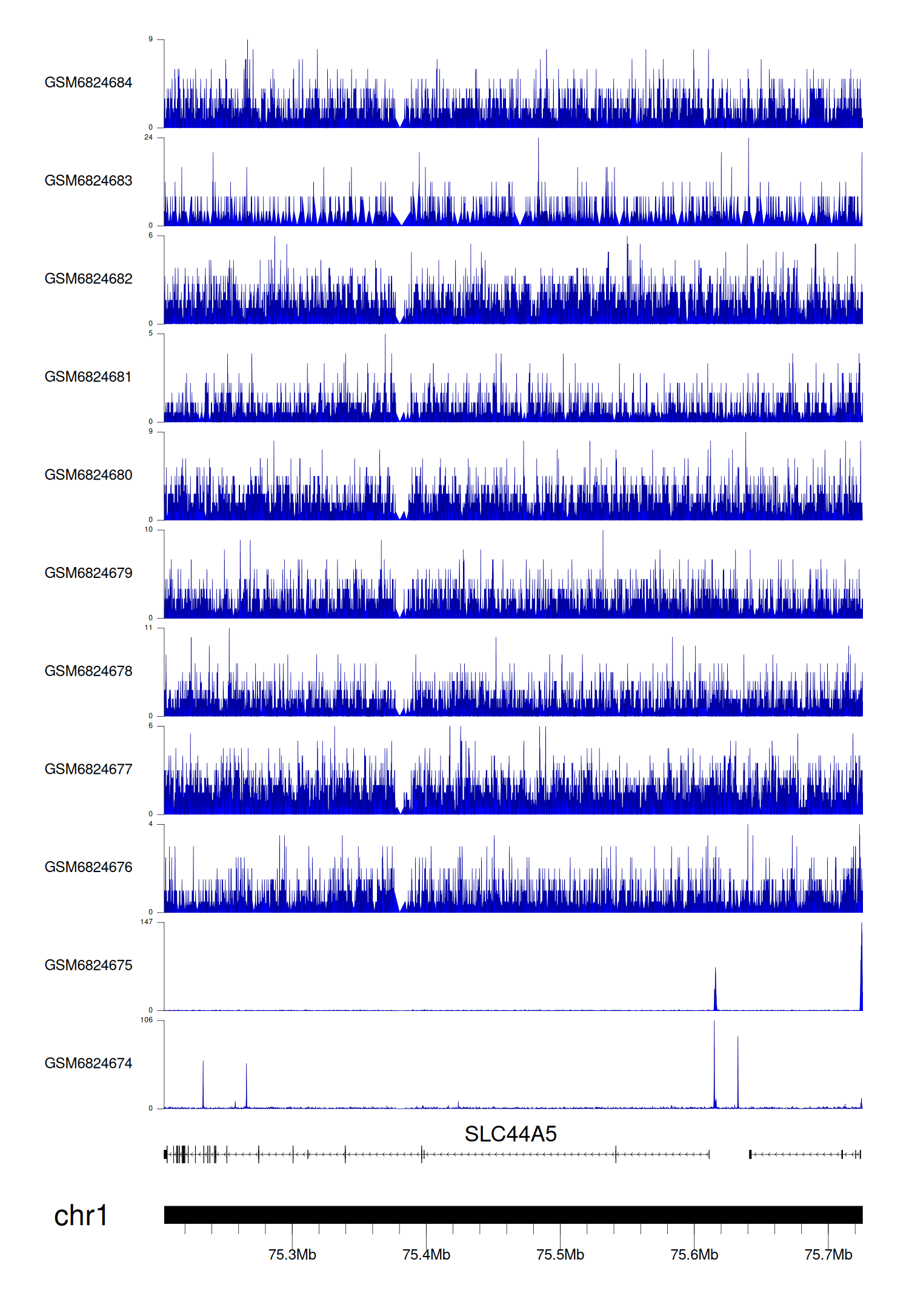 > Dataset: GSE144329 - SLC44A5 peak across samples