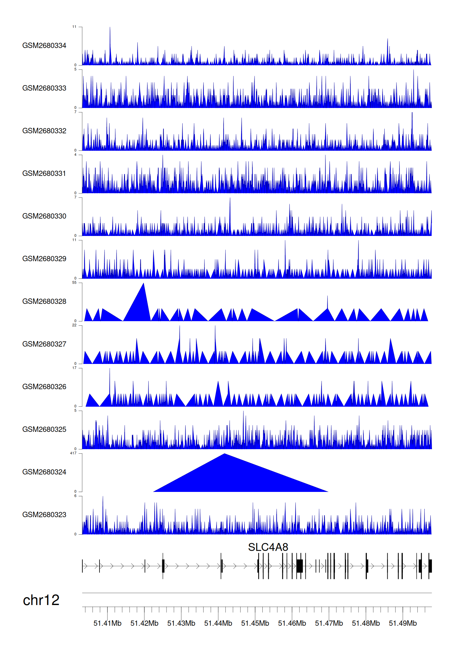 > Dataset: GSE100400 - SLC4A8 peak across samples