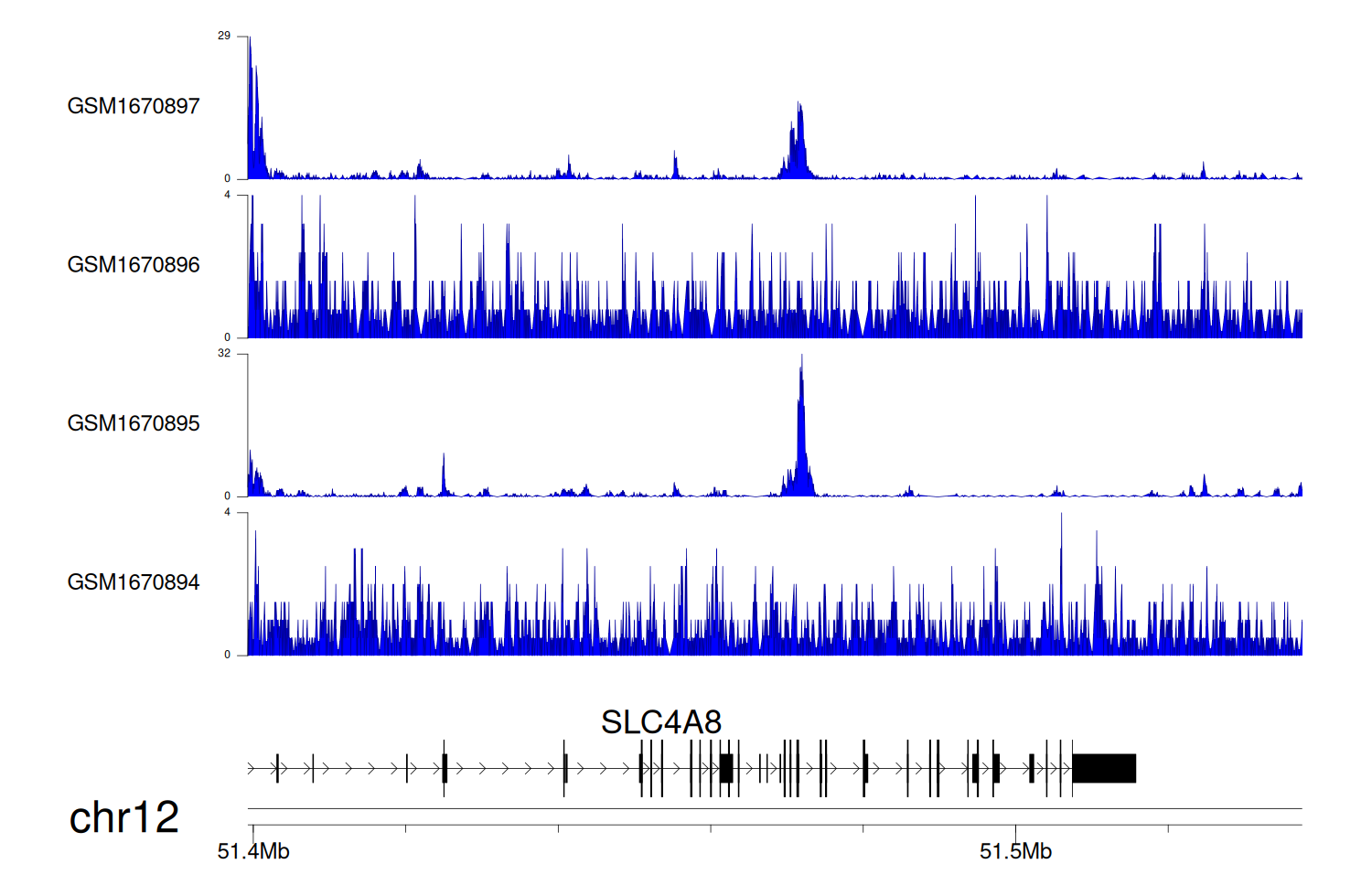 > Dataset: GSE68402 - SLC4A8 peak across samples