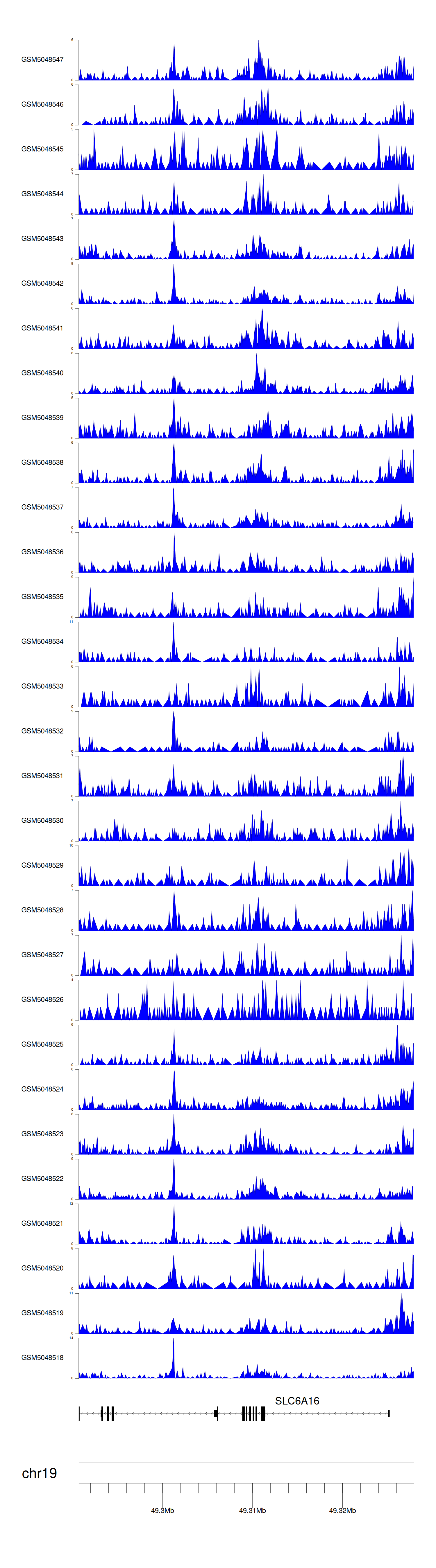 > Dataset: GSE100376 - SLC6A16 peak across samples