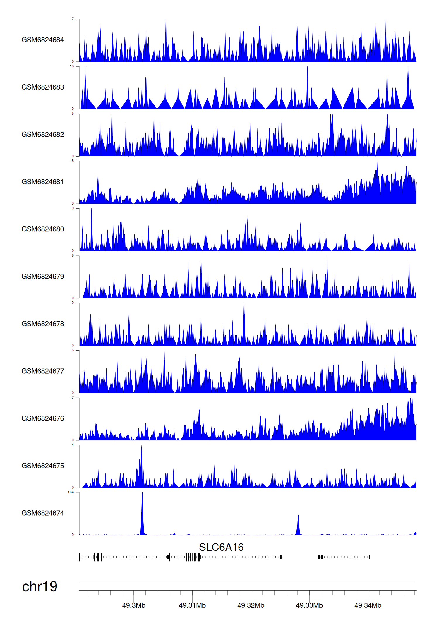 > Dataset: GSE144329 - SLC6A16 peak across samples