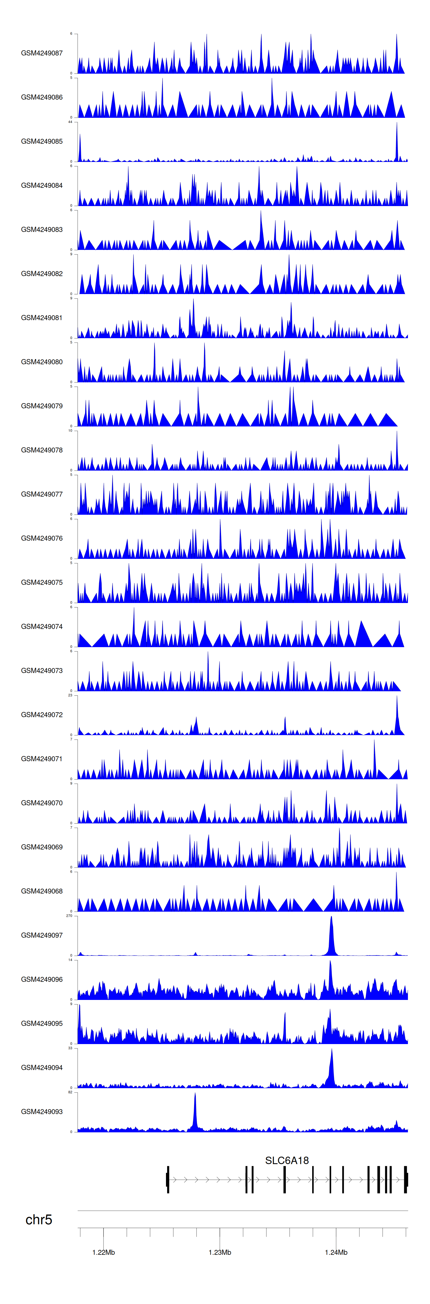 > Dataset: GSE143026 - SLC6A18 peak across samples