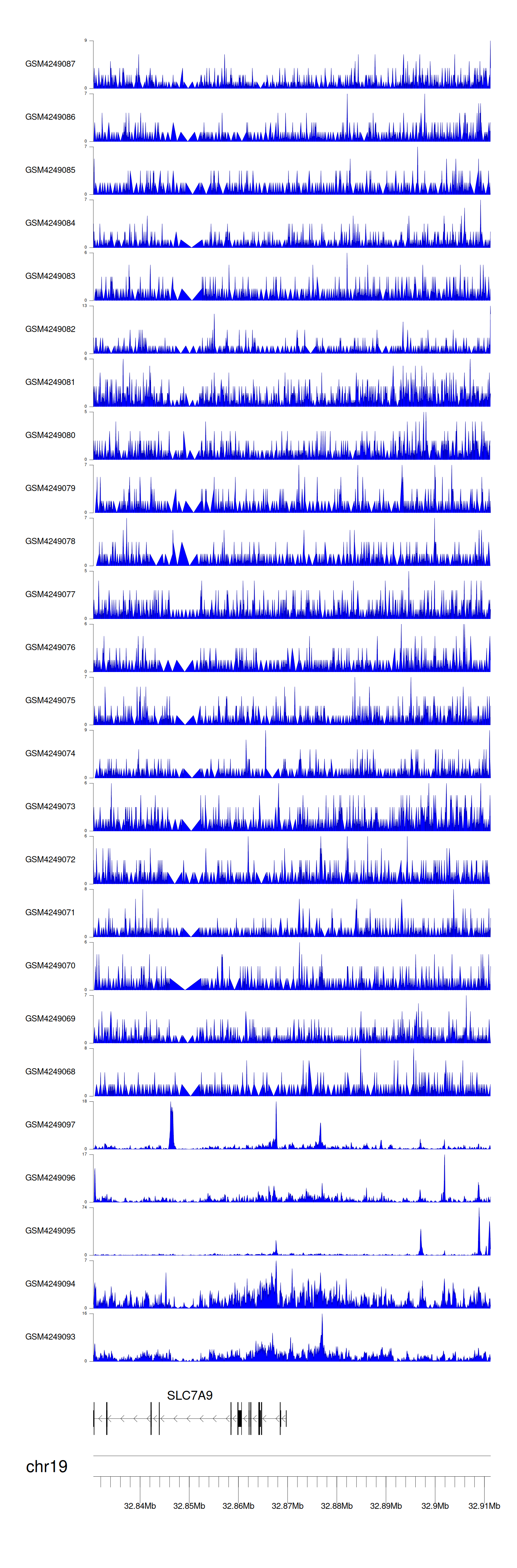 > Dataset: GSE143026 - SLC7A9 peak across samples
