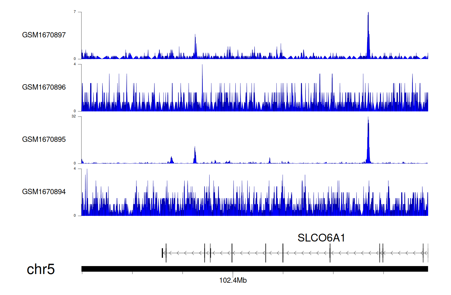> Dataset: GSE68402 - SLCO6A1 peak across samples