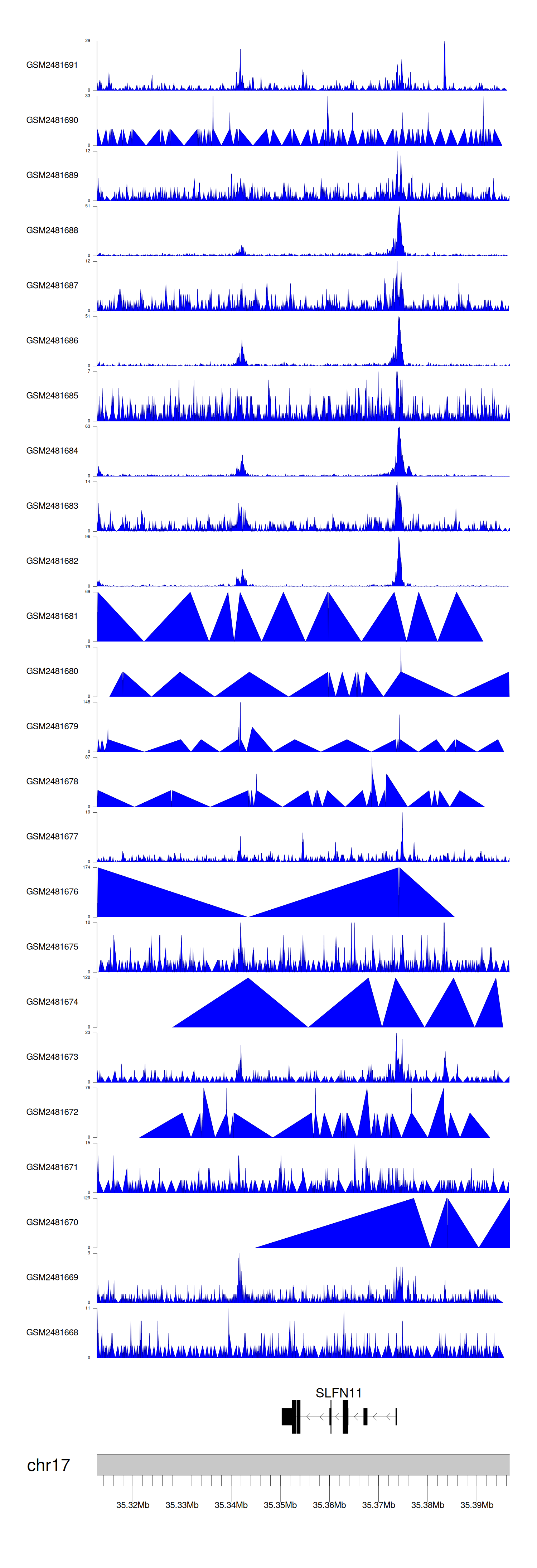 > Dataset: GSE94732 - SLFN11 peak across samples