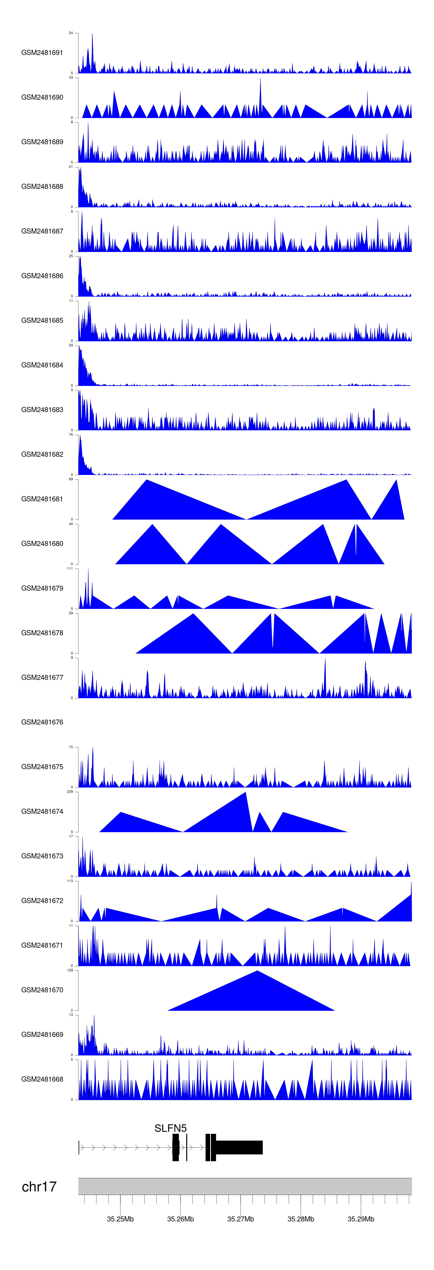 > Dataset: GSE94732 - SLFN5 peak across samples