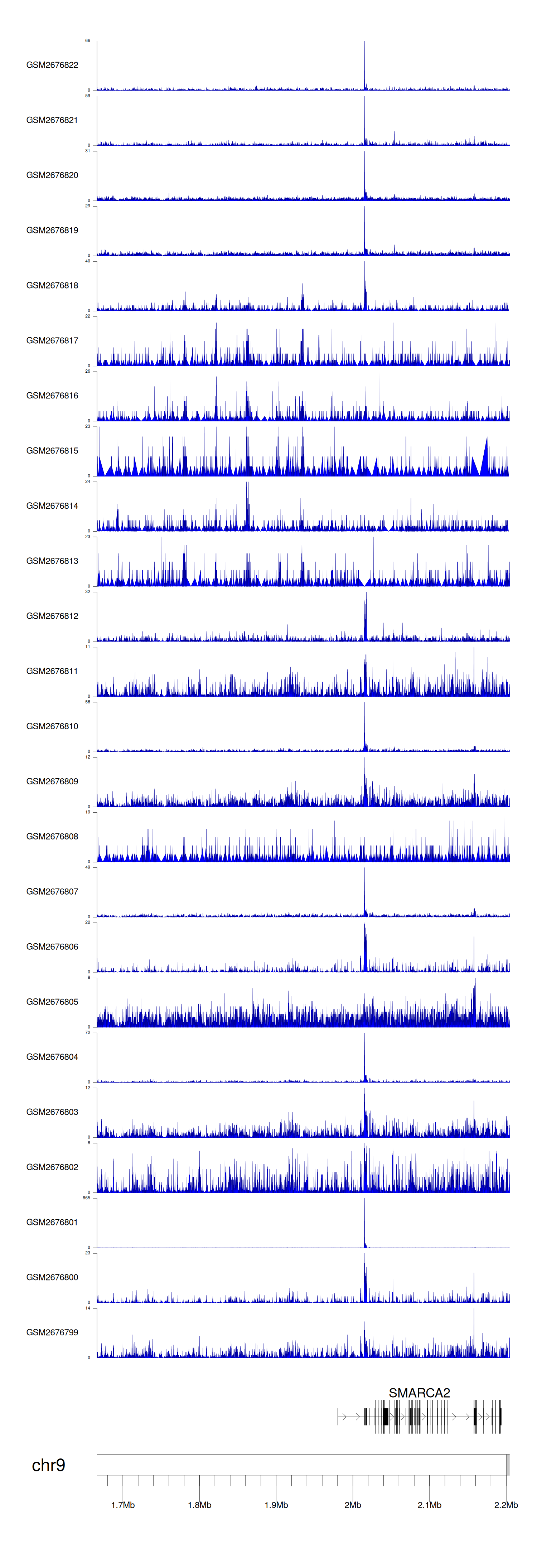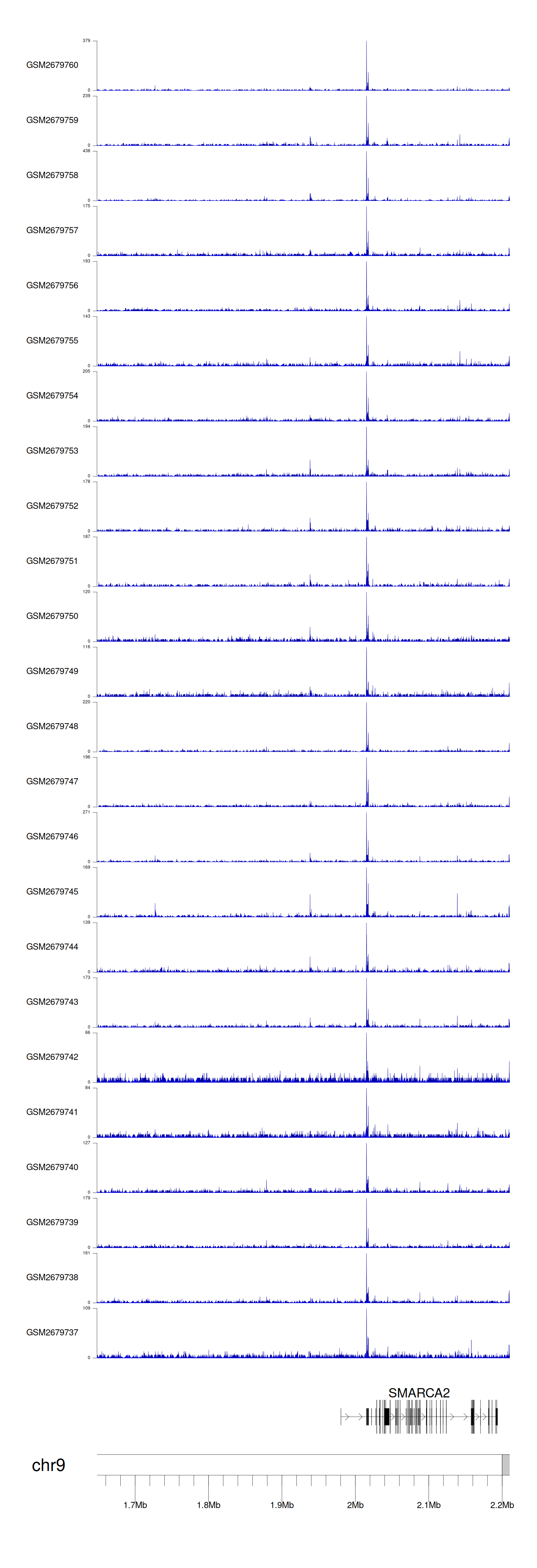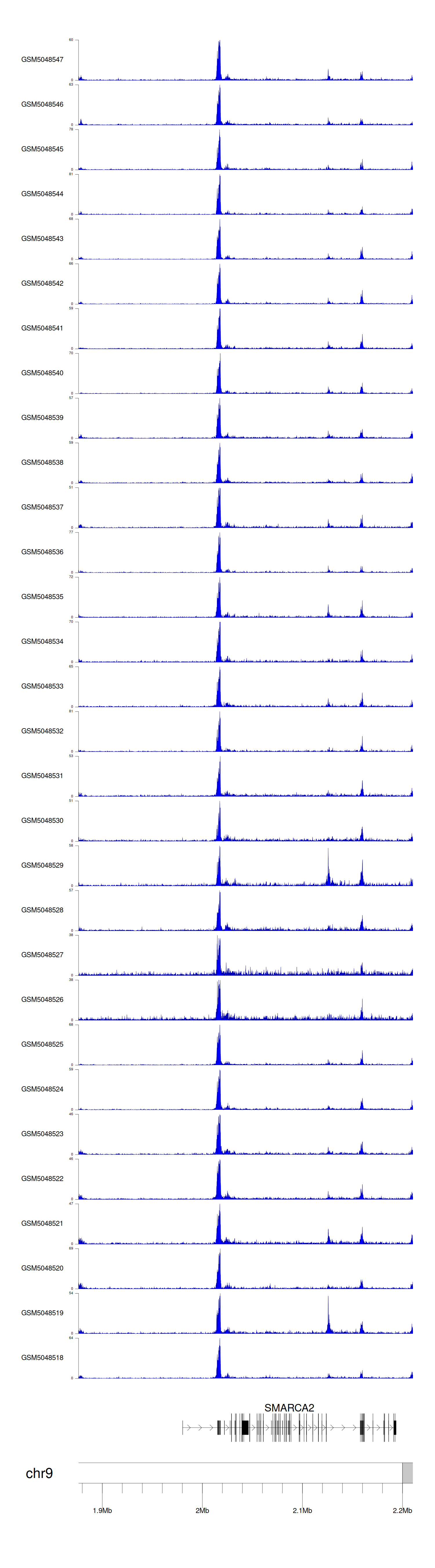 > Dataset: GSE30738 - SMARCA2 peak across samples