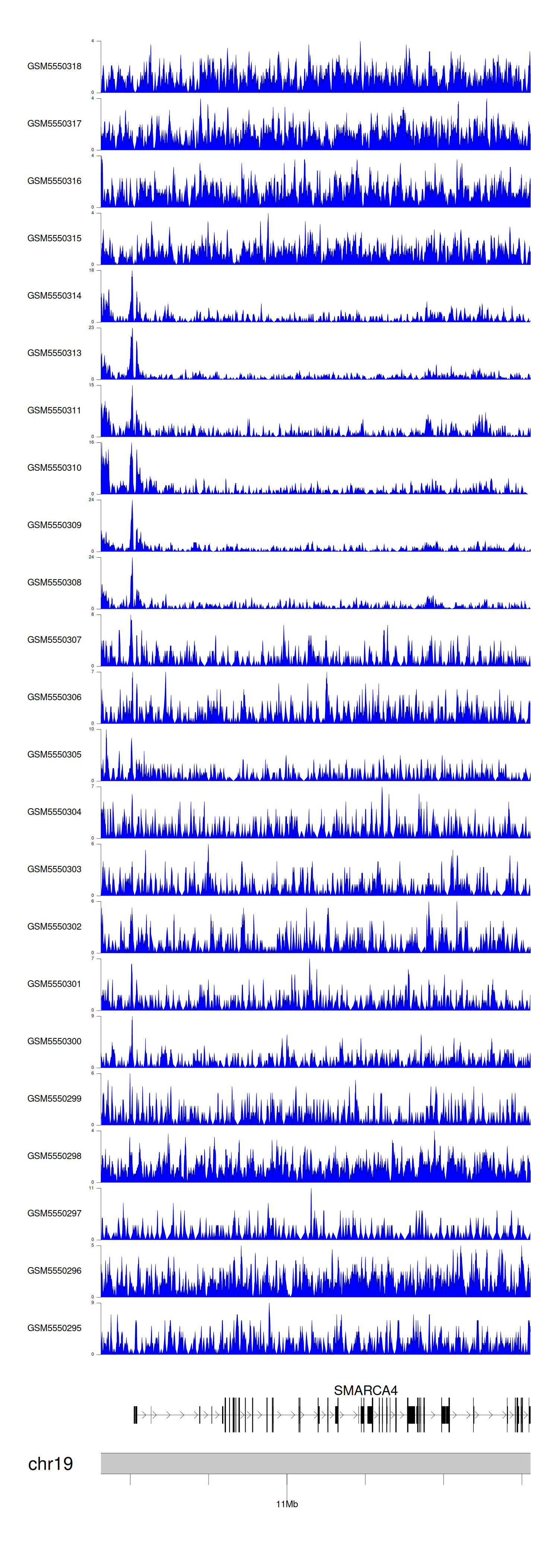> Dataset: GSE143026 - SMARCA4 peak across samples