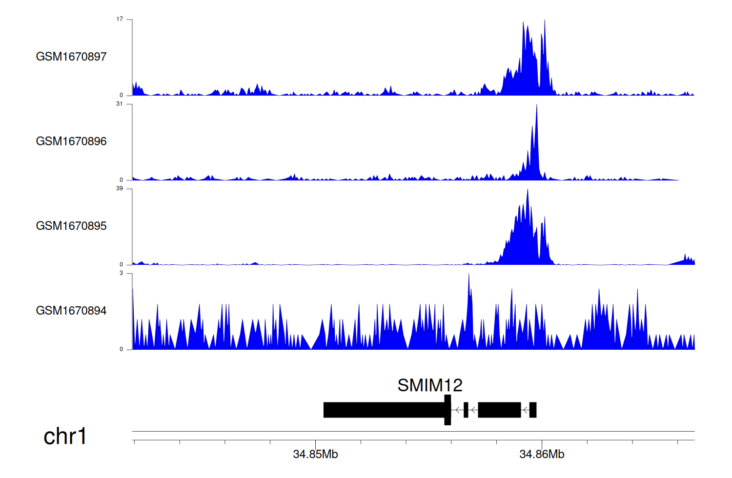 > Dataset: GSE35465 - SMIM12 peak across samples