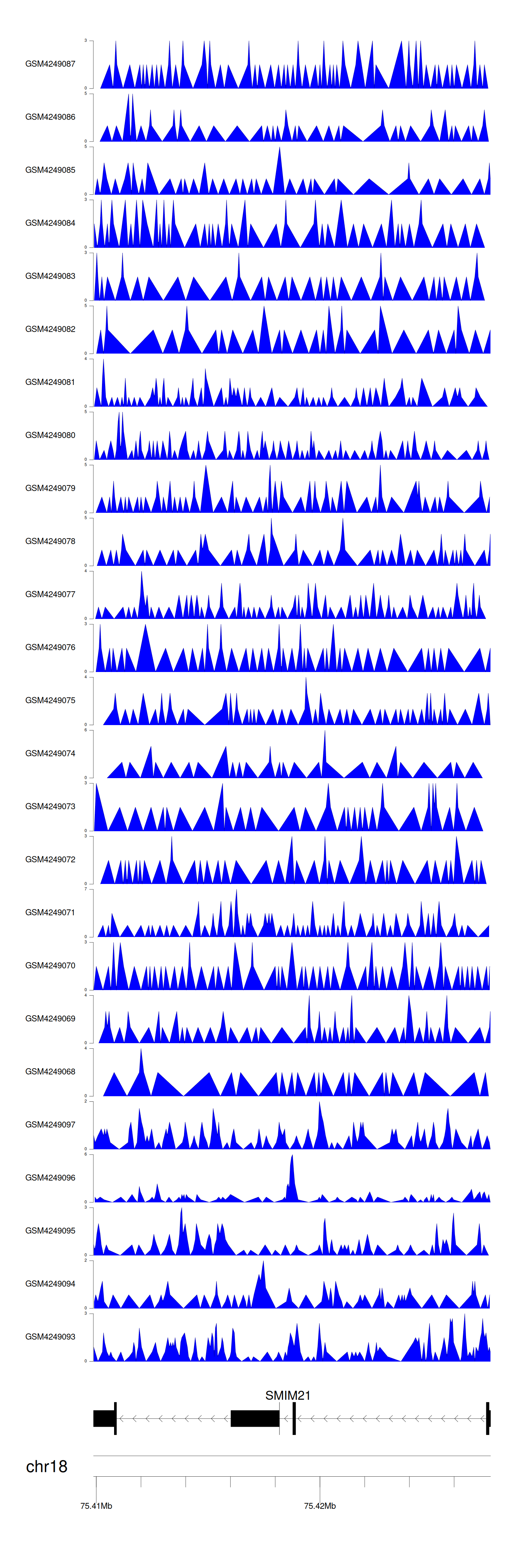 > Dataset: GSE143026 - SMIM21 peak across samples