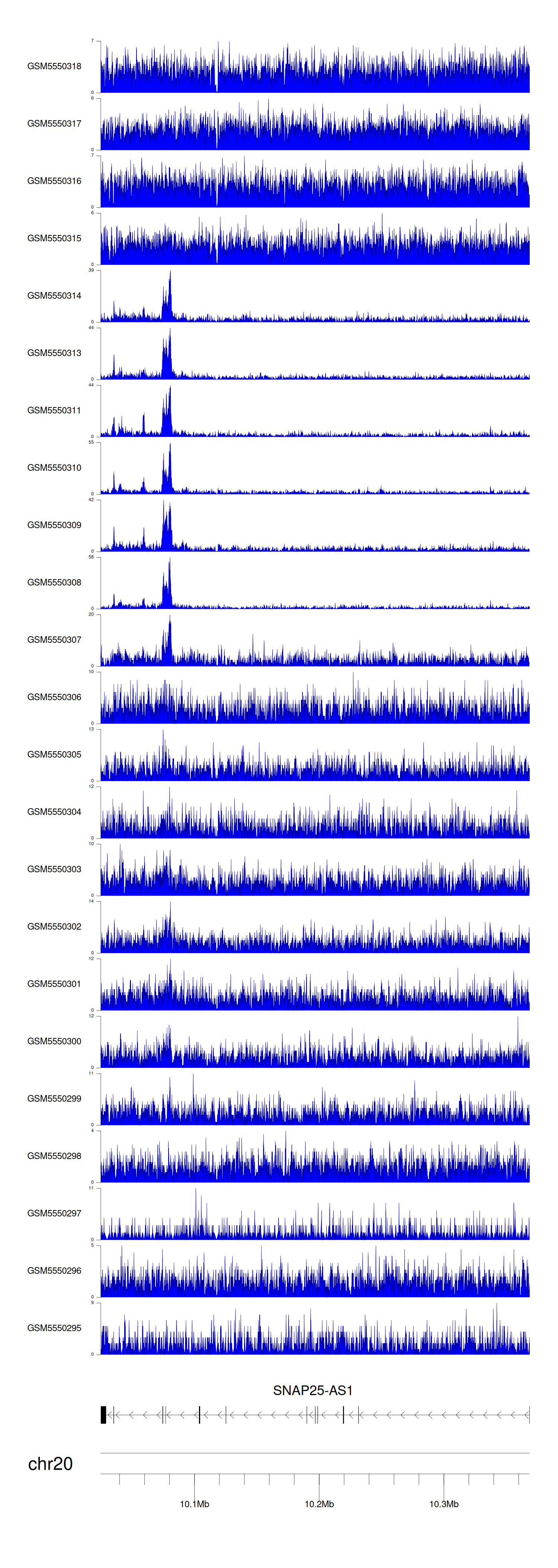 > Dataset: GSE143026 - SNAP25-AS1 peak across samples