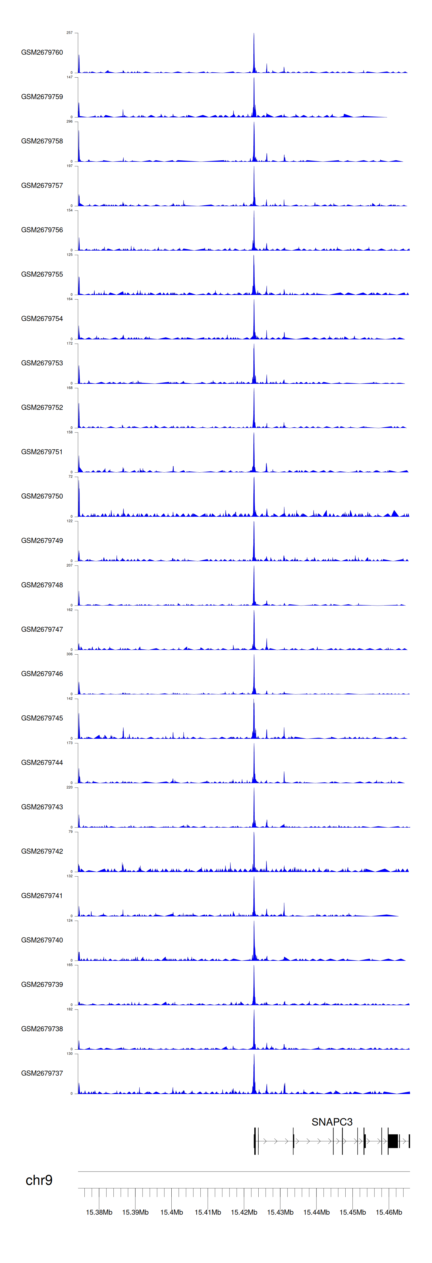 > Dataset: GSE100376 - SNAPC3 peak across samples