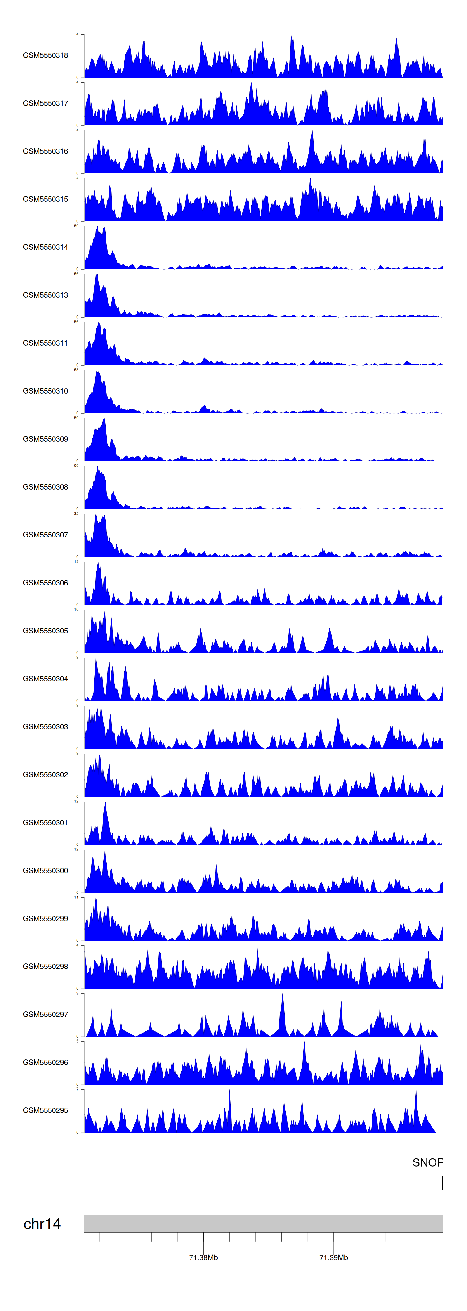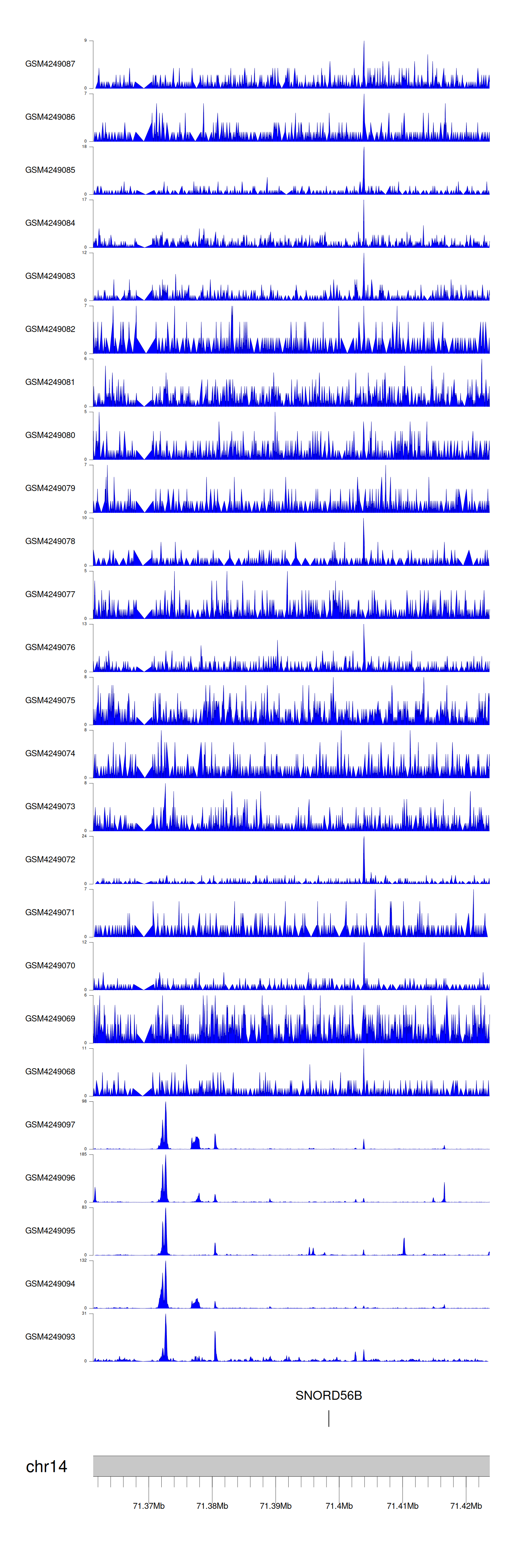 > Dataset: GSE143026 - SNORD56B peak across samples