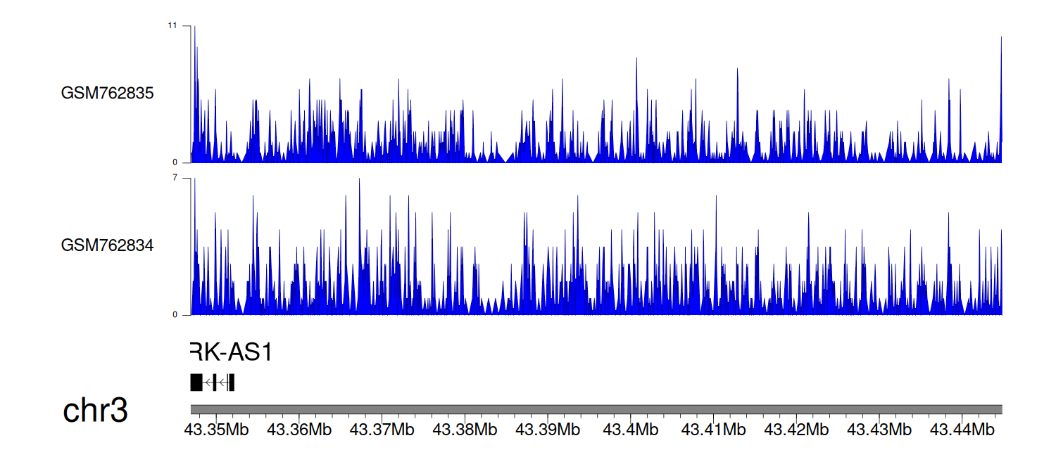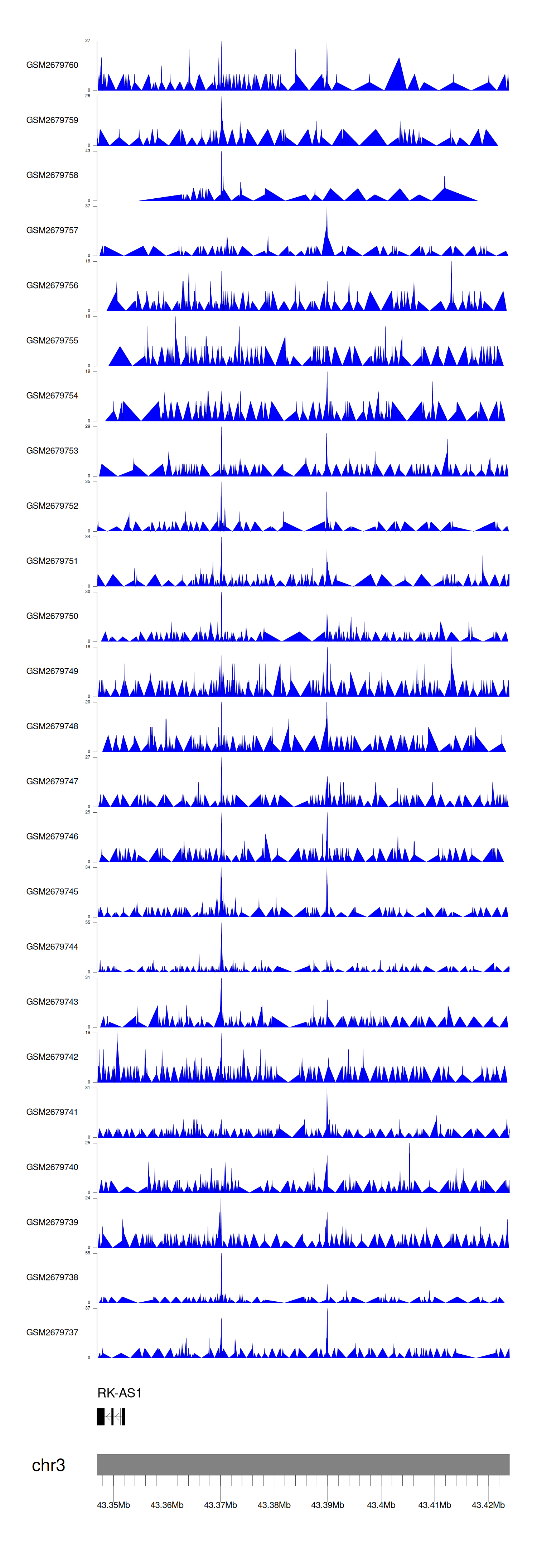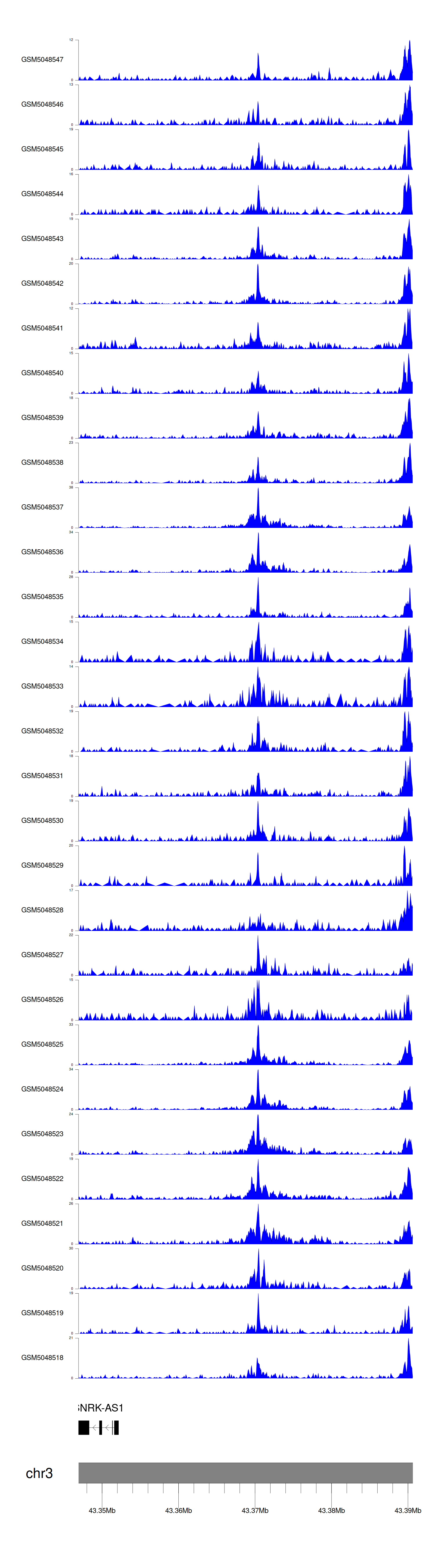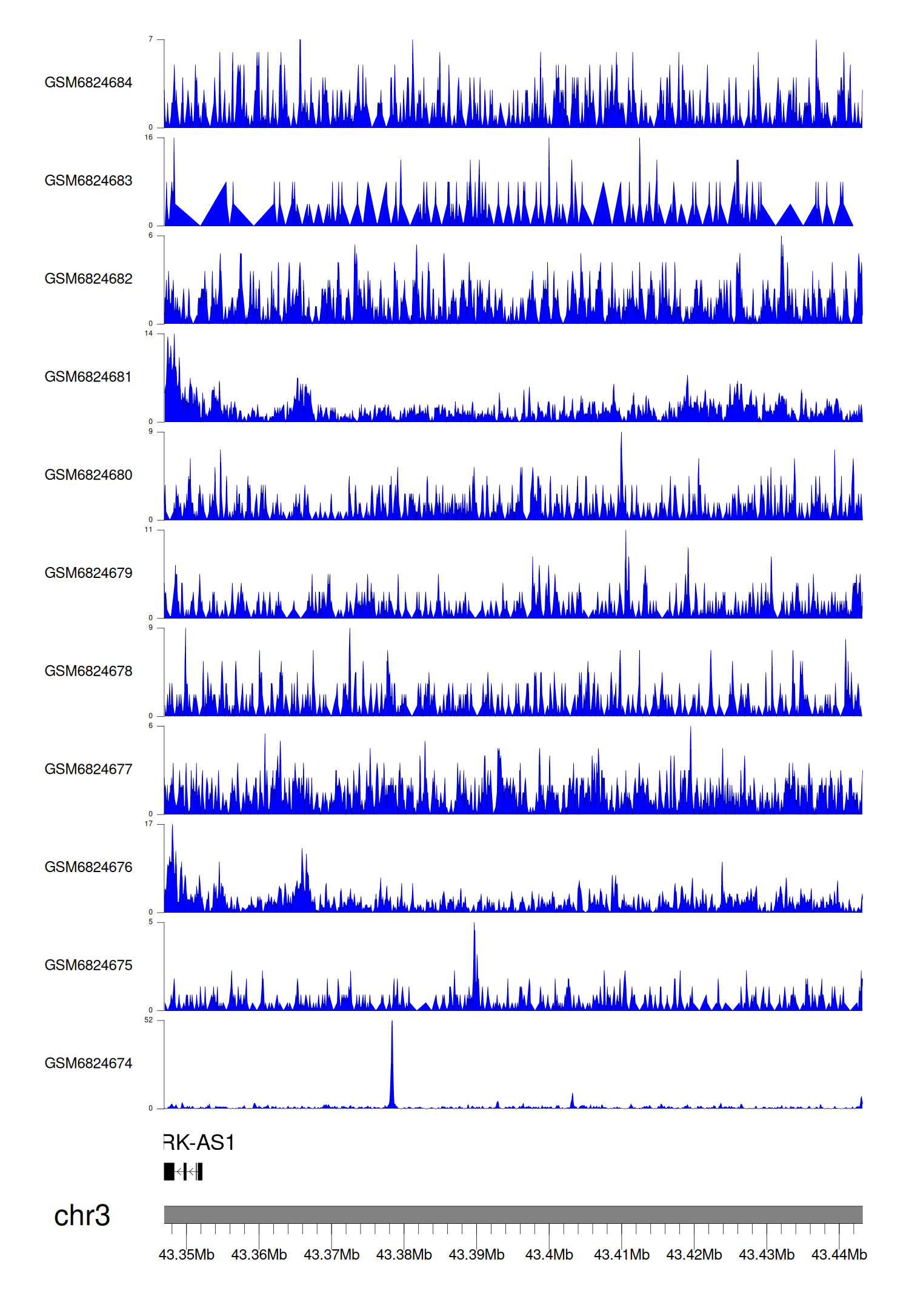 > Dataset: GSE144329 - SNRK-AS1 peak across samples