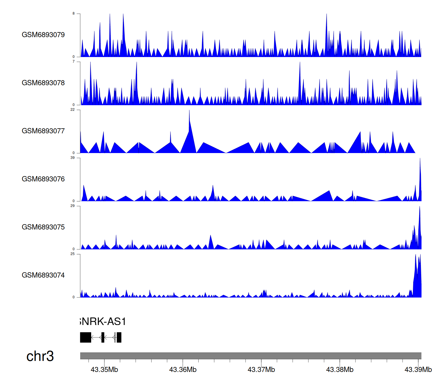 > Dataset: GSE220859 - SNRK-AS1 peak across samples