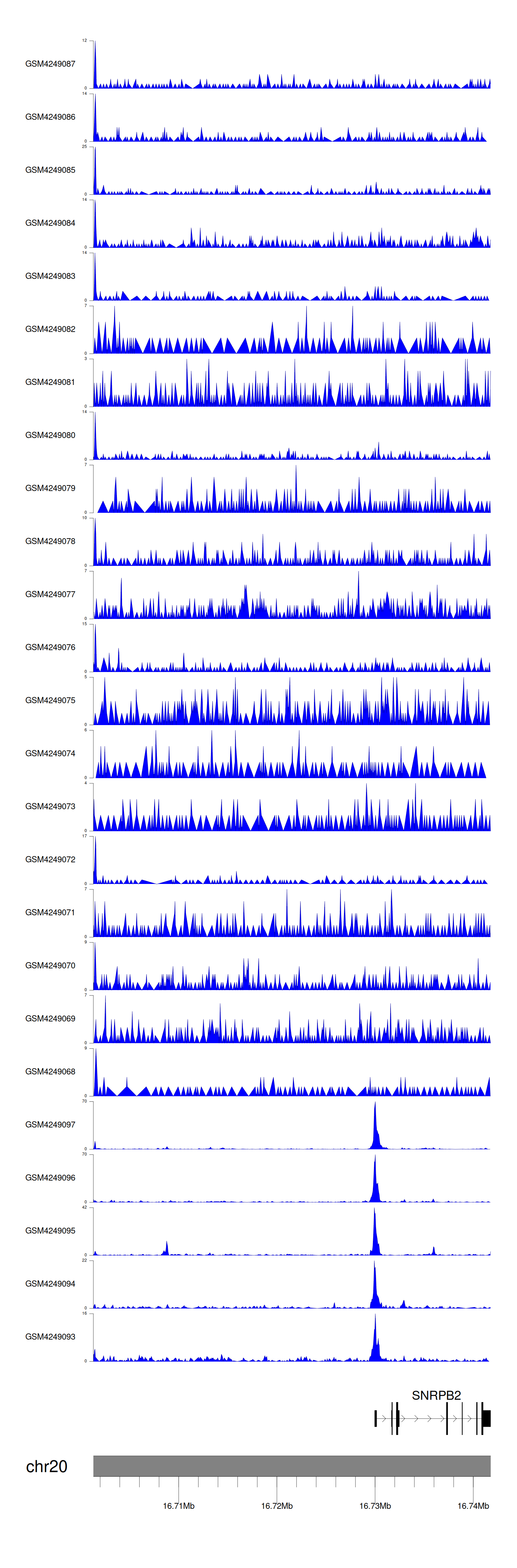 > Dataset: GSE143026 - SNRPB2 peak across samples
