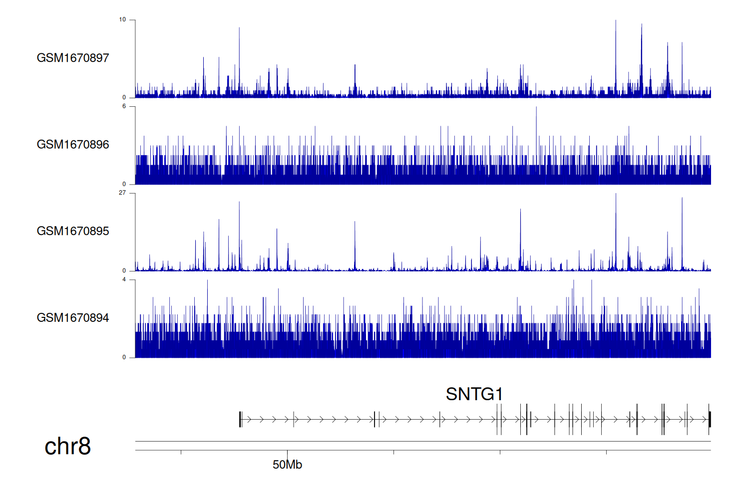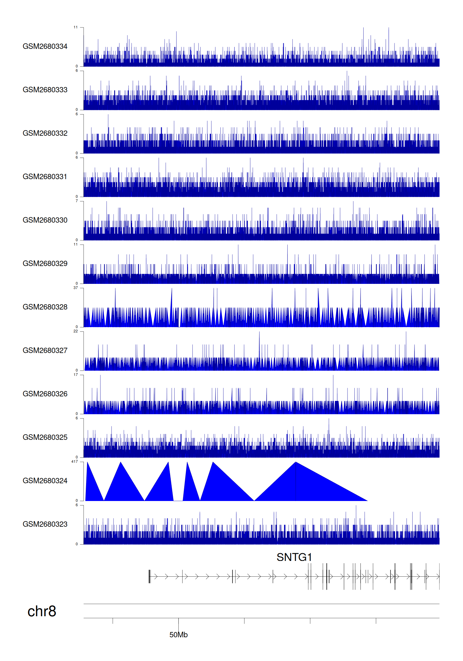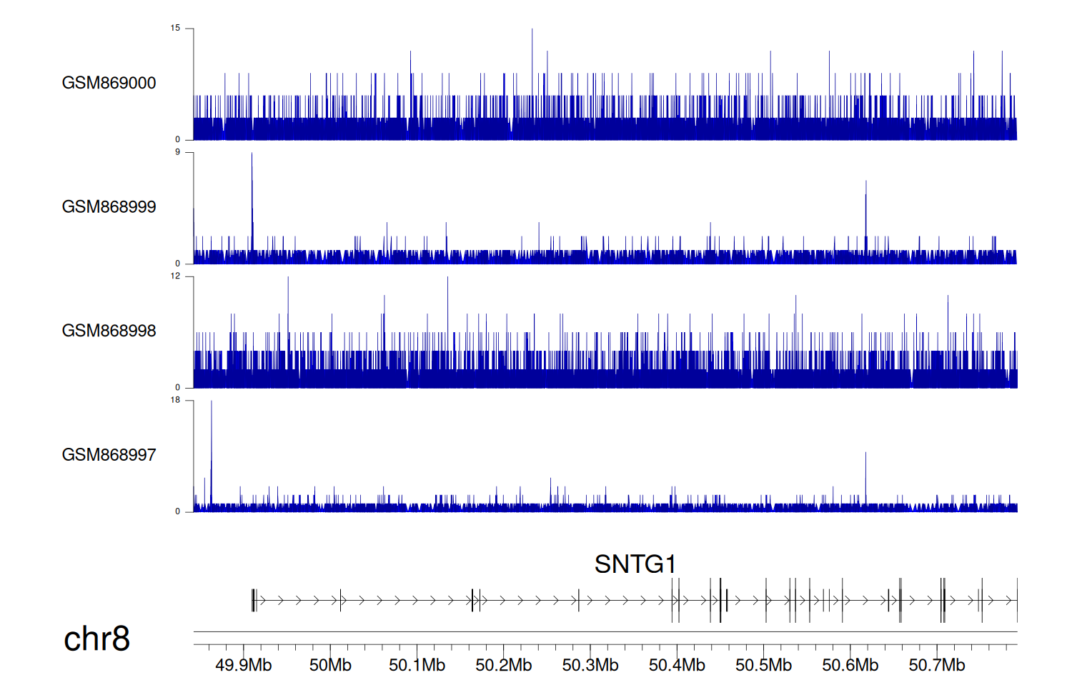 > Dataset: GSE68402 - SNTG1 peak across samples