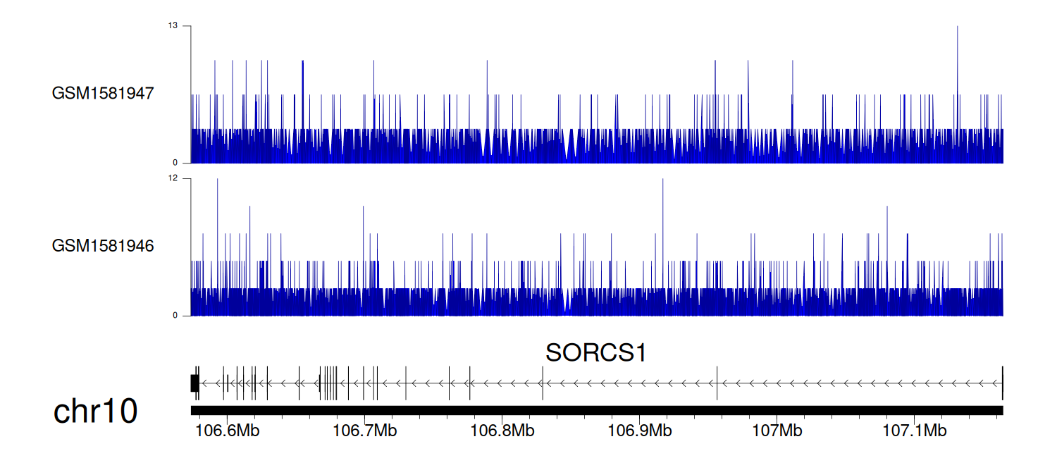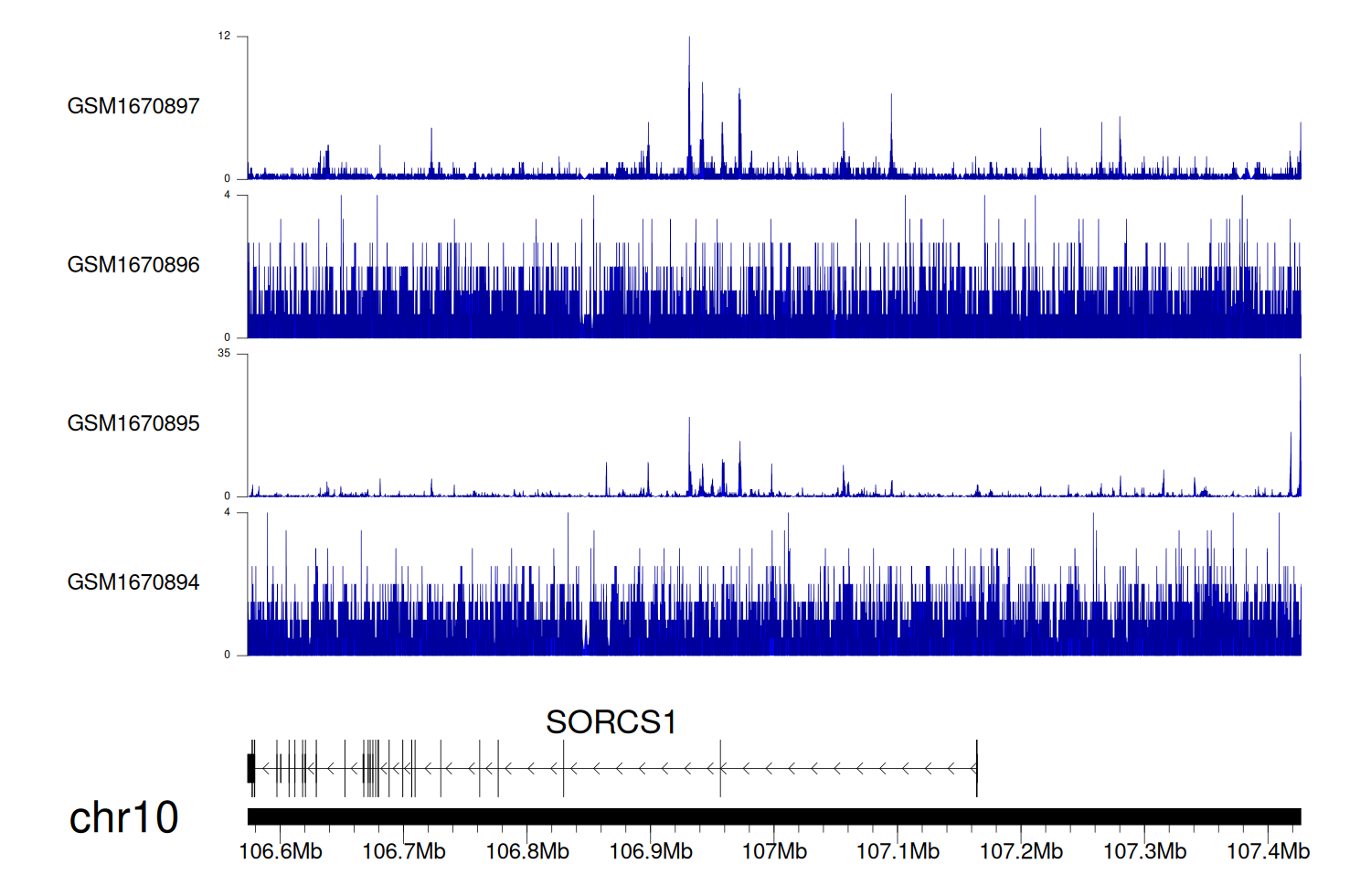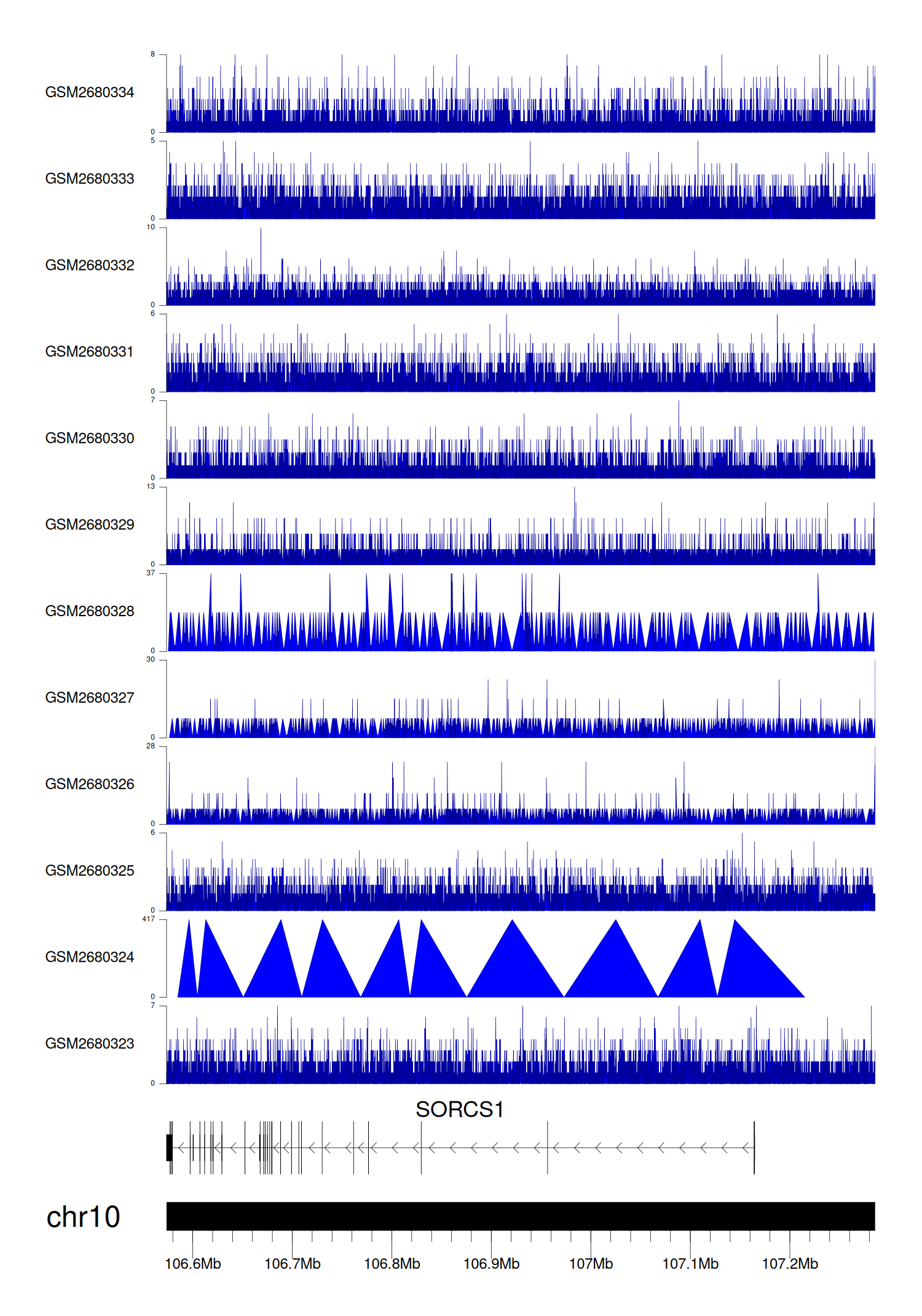 > Dataset: GSE68402 - SORCS1 peak across samples