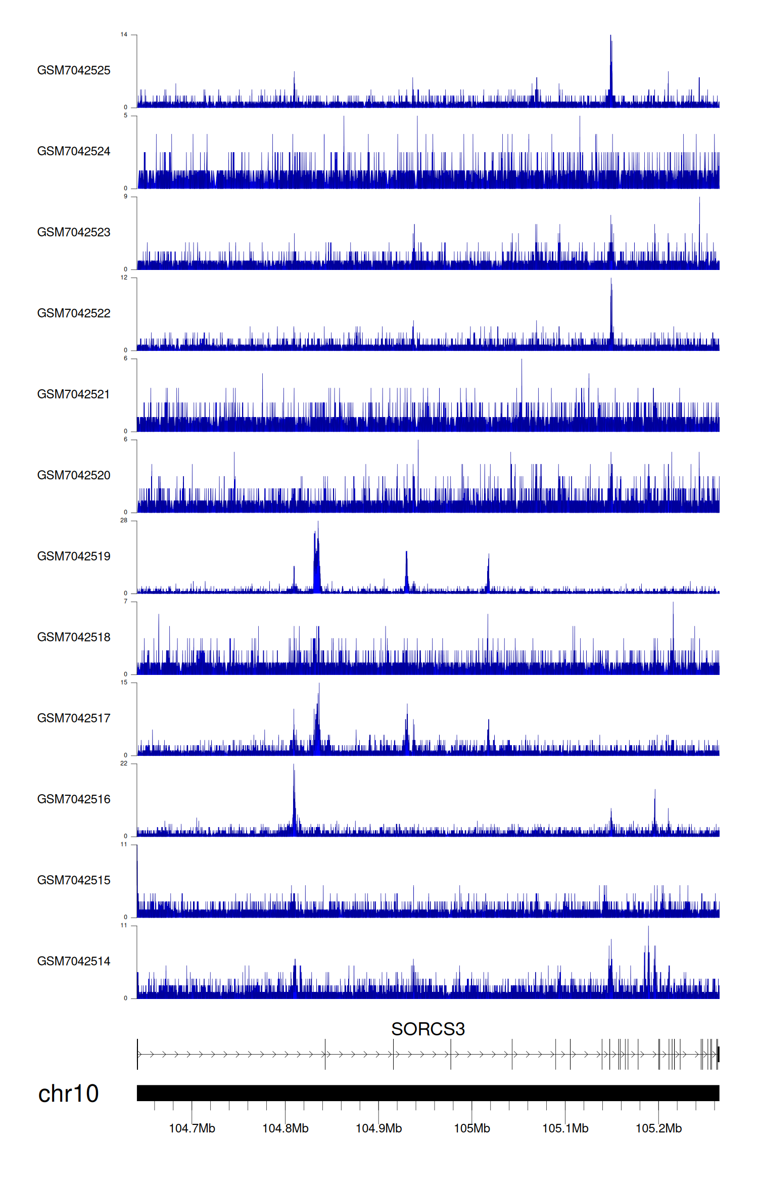 > Dataset: GSE225248 - SORCS3 peak across samples