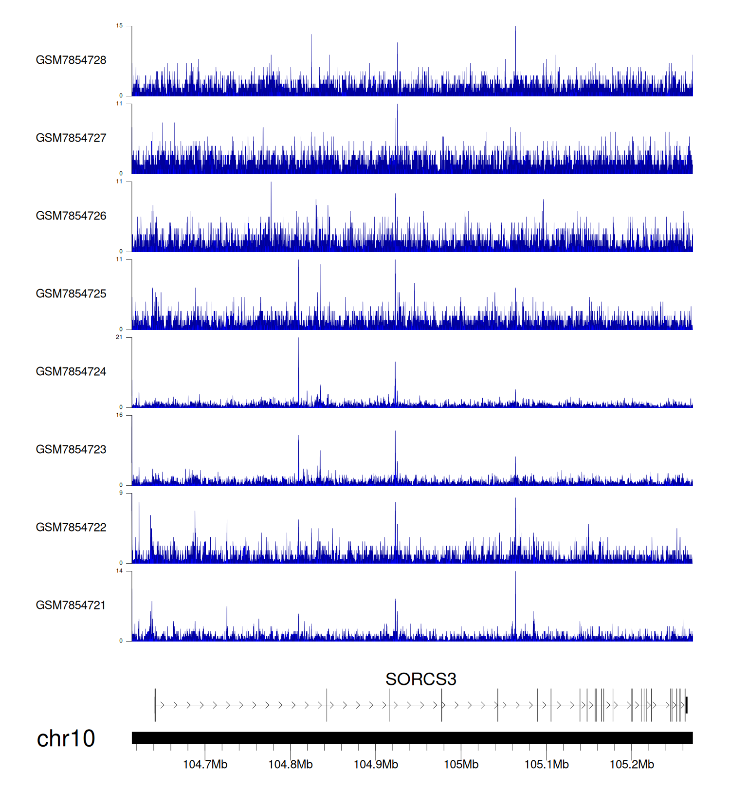 > Dataset: GSE246060 - SORCS3 peak across samples
