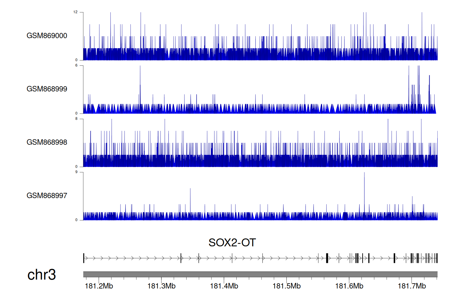 > Dataset: GSE100400 - SOX2-OT peak across samples