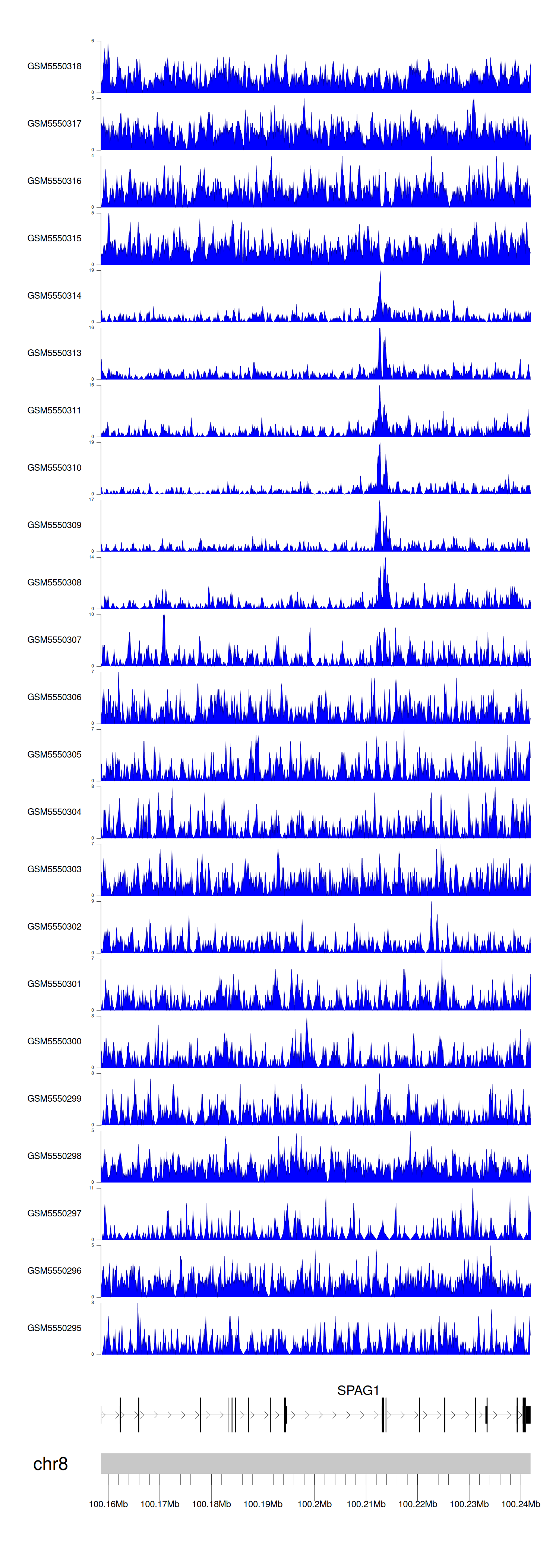 > Dataset: GSE143026 - SPAG1 peak across samples