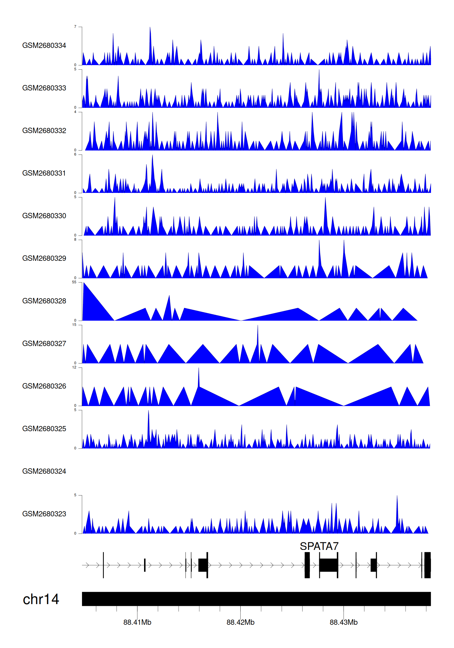 > Dataset: GSE68402 - SPATA7 peak across samples
