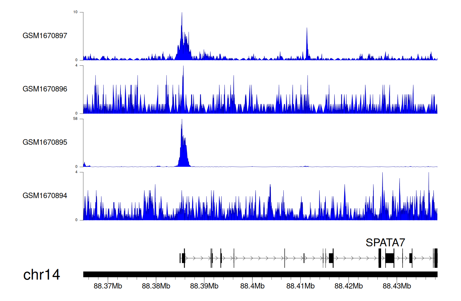 > Dataset: GSE100400 - SPATA7 peak across samples
