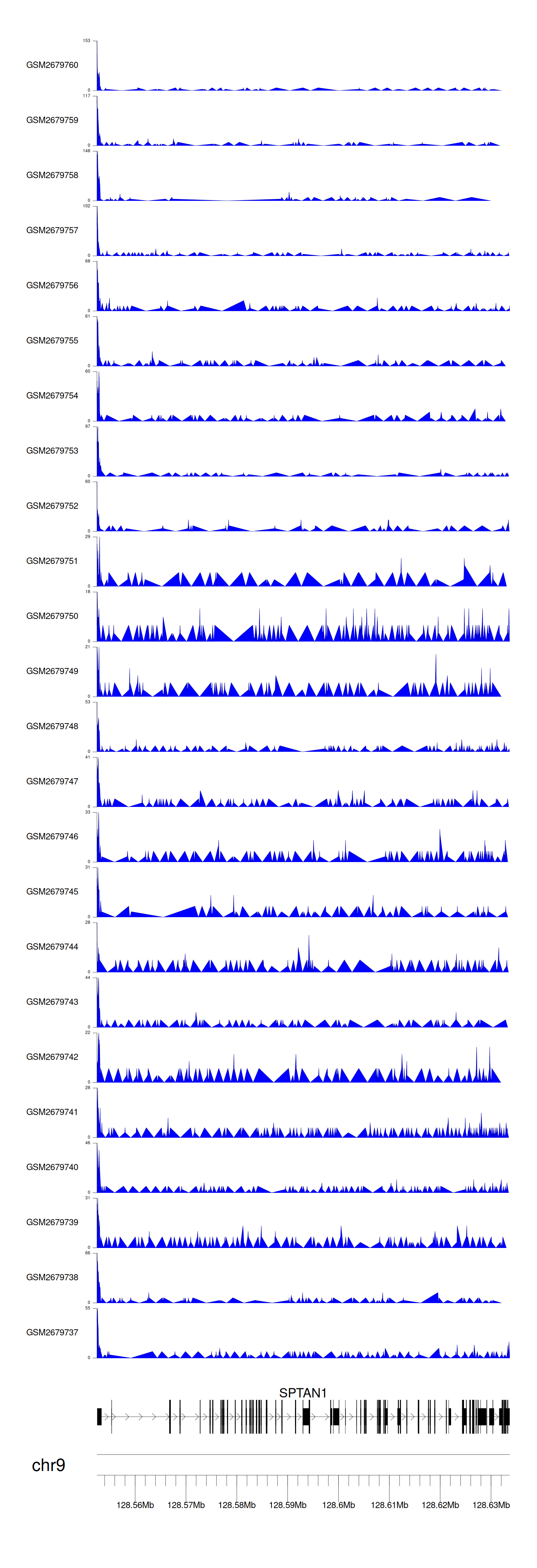 > Dataset: GSE100376 - SPTAN1 peak across samples