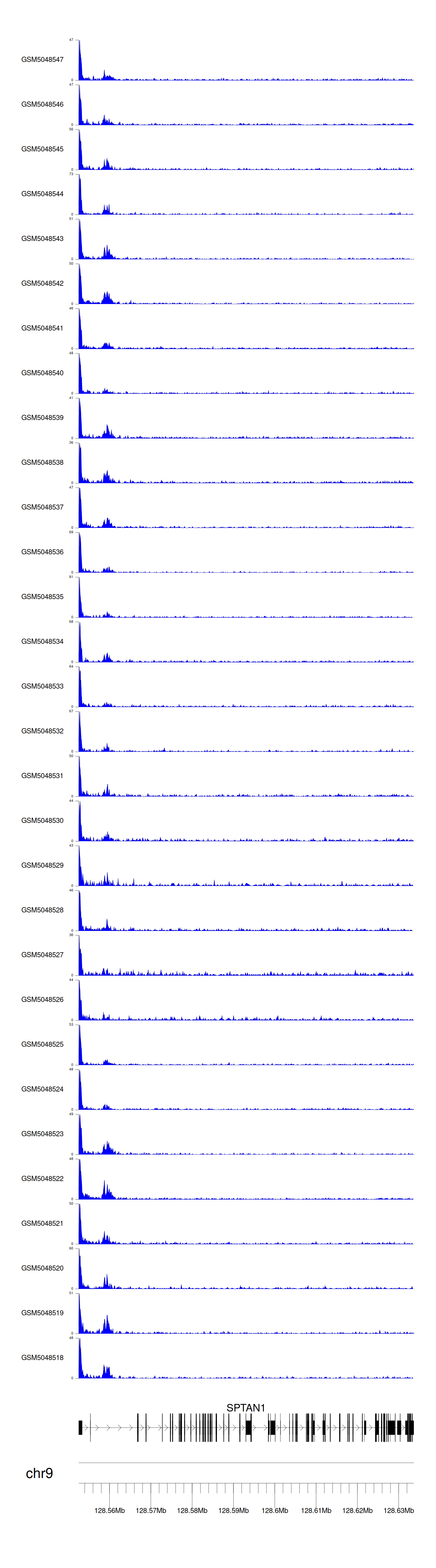 > Dataset: GSE30738 - SPTAN1 peak across samples