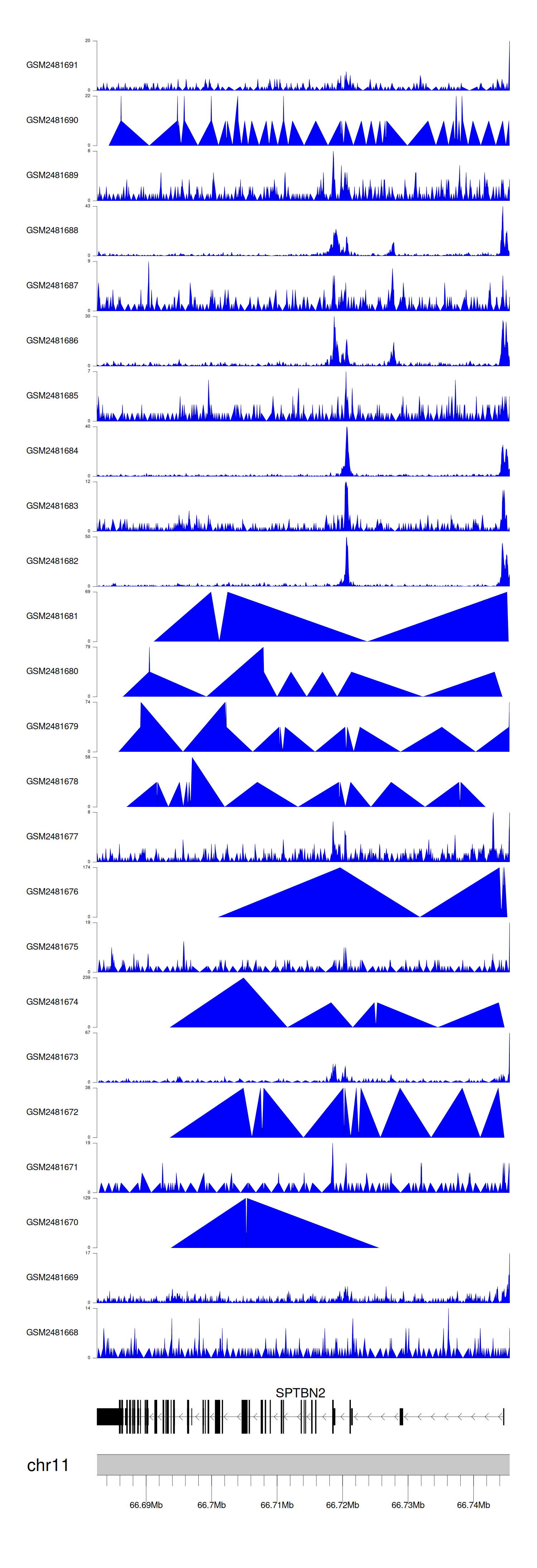 > Dataset: GSE94732 - SPTBN2 peak across samples