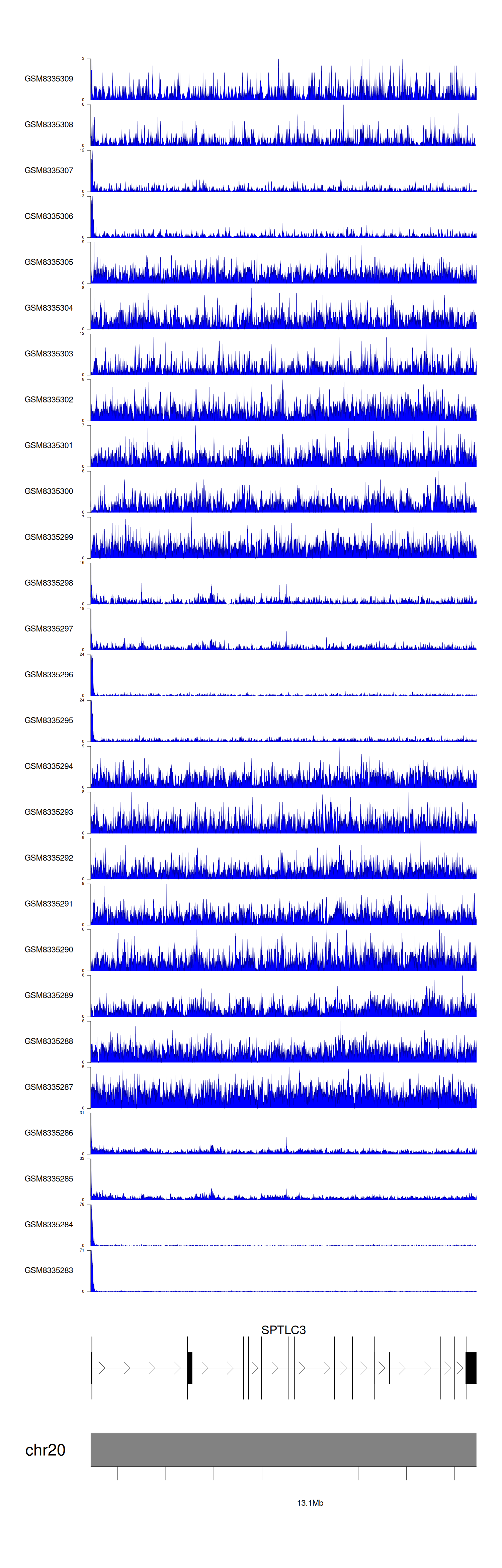 > Dataset: GSE131257 - SPTLC3 peak across samples