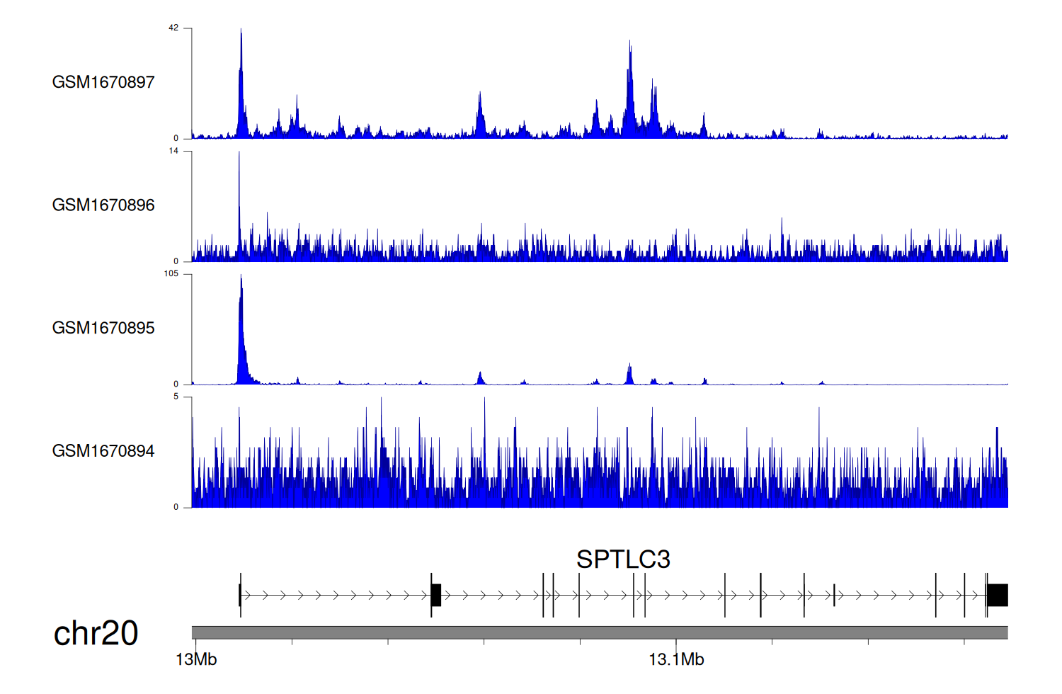 > Dataset: GSE68402 - SPTLC3 peak across samples