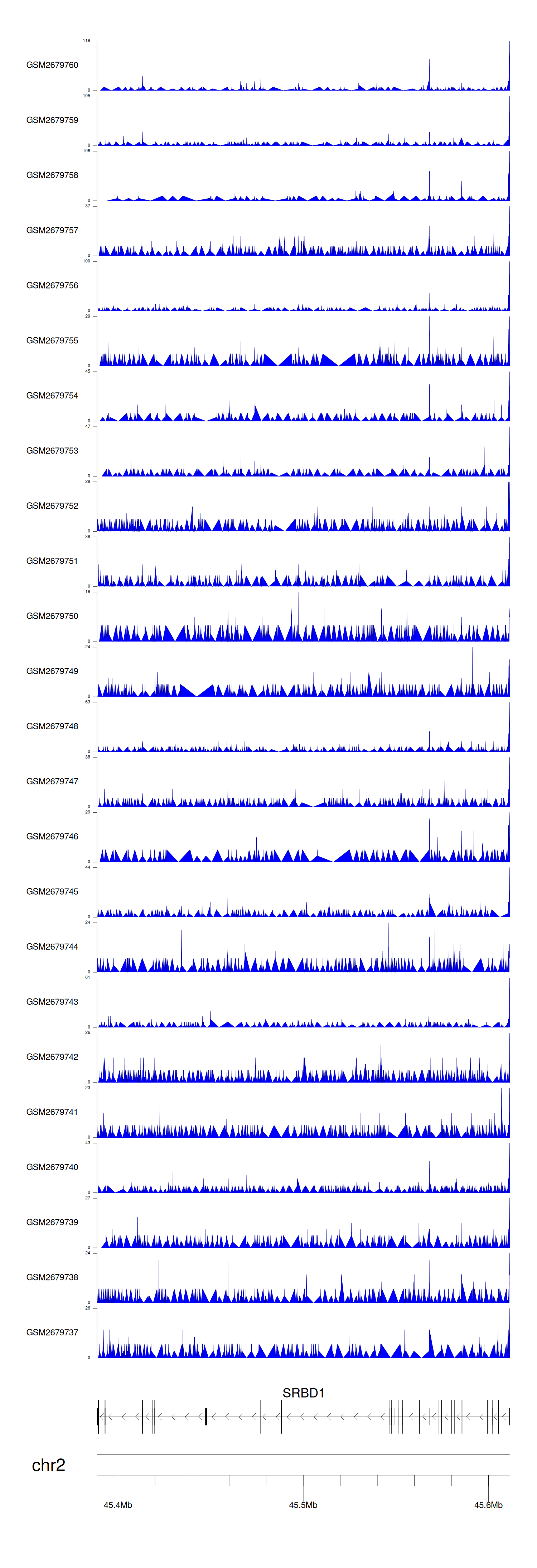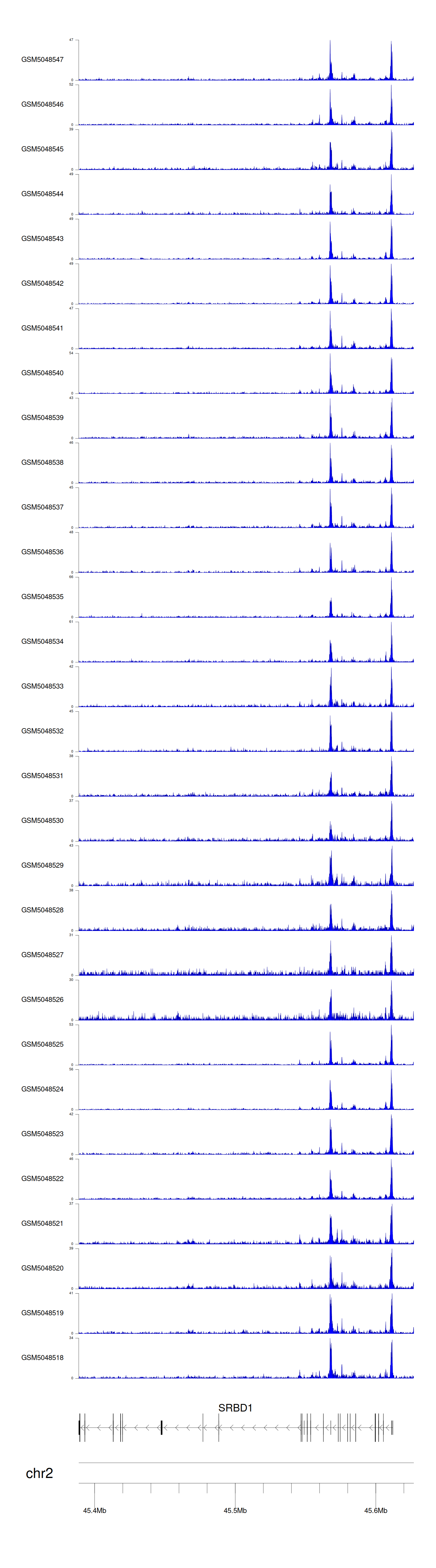> Dataset: GSE100376 - SRBD1 peak across samples