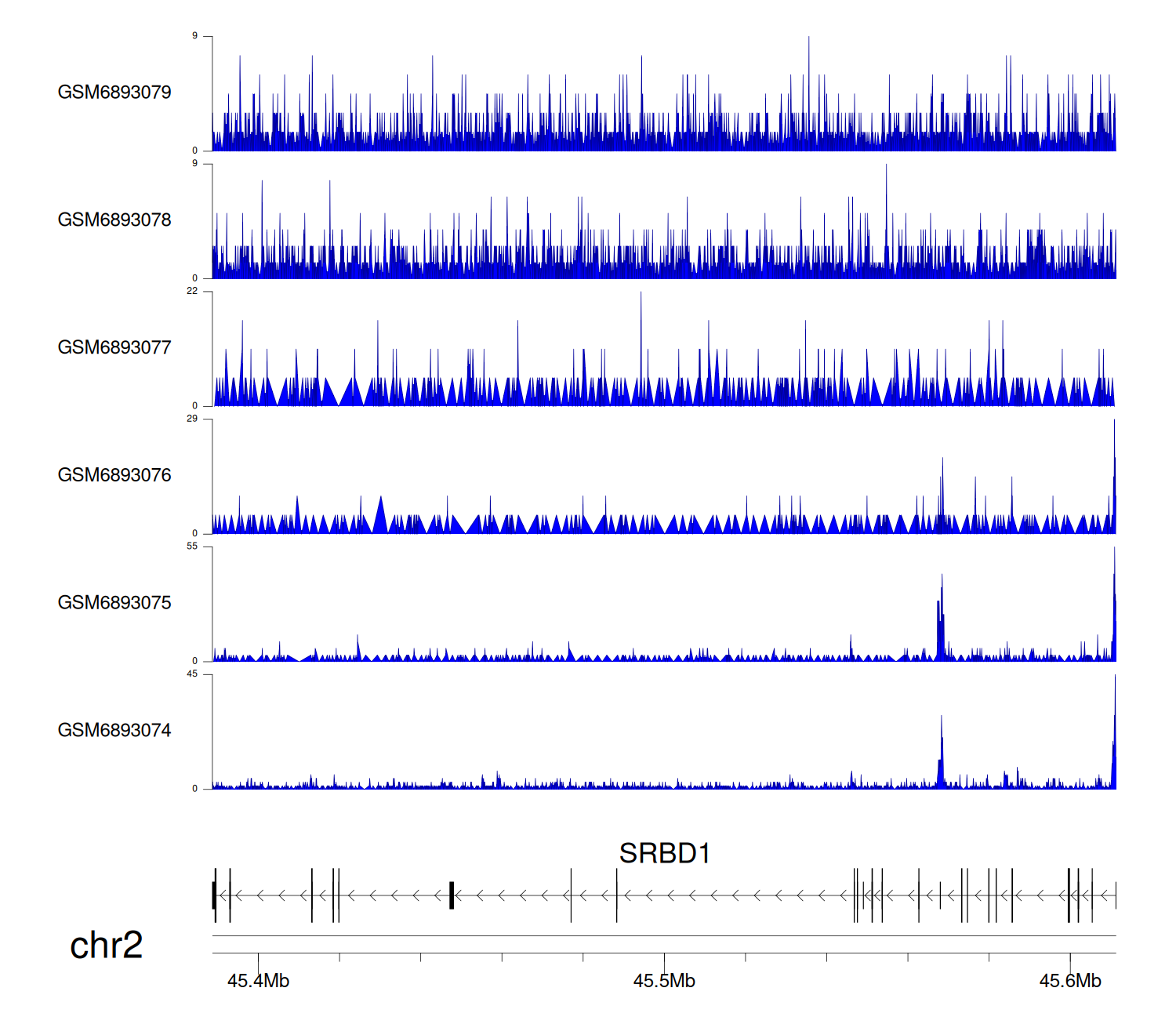 > Dataset: GSE220859 - SRBD1 peak across samples